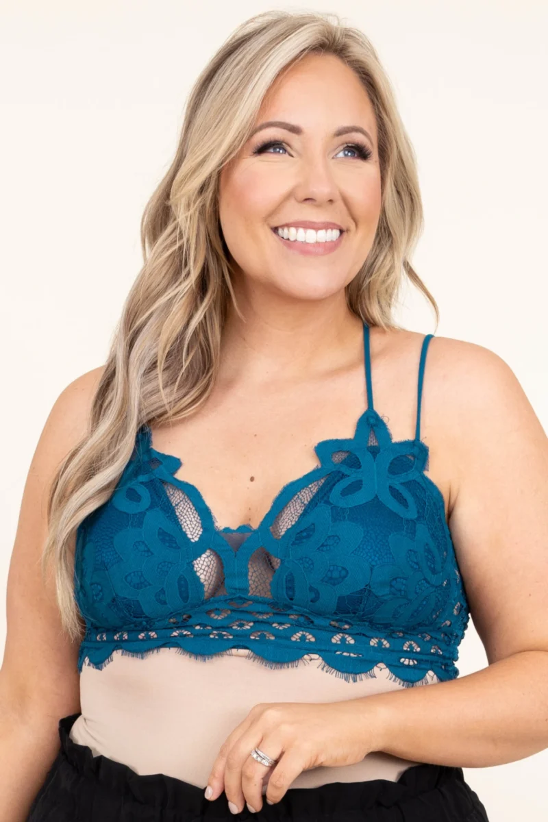 It’s no secret how stunning you will looking this bralette! The bold teal color is so sweet and feminine and the lace style is absolutely gorgeous! The straps are adjustable so you can have a comfy fit and the double strap look is so cute! Style this under a tank for a super stylish look!