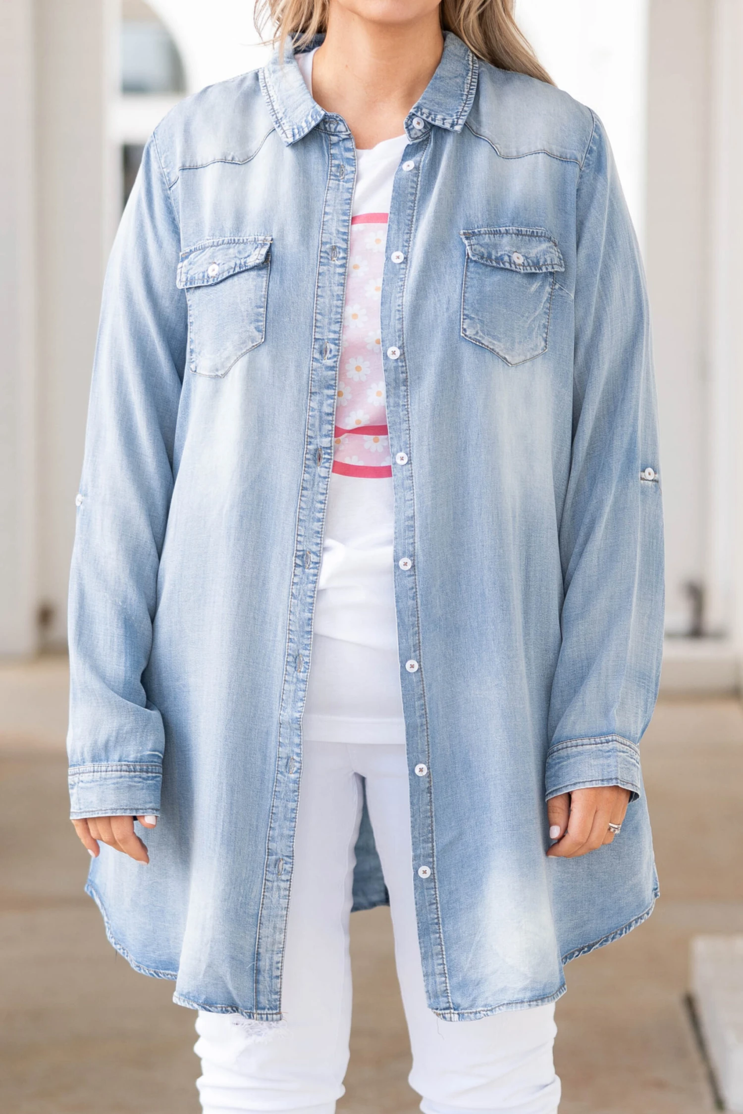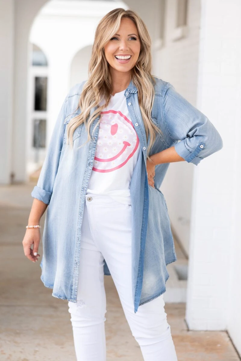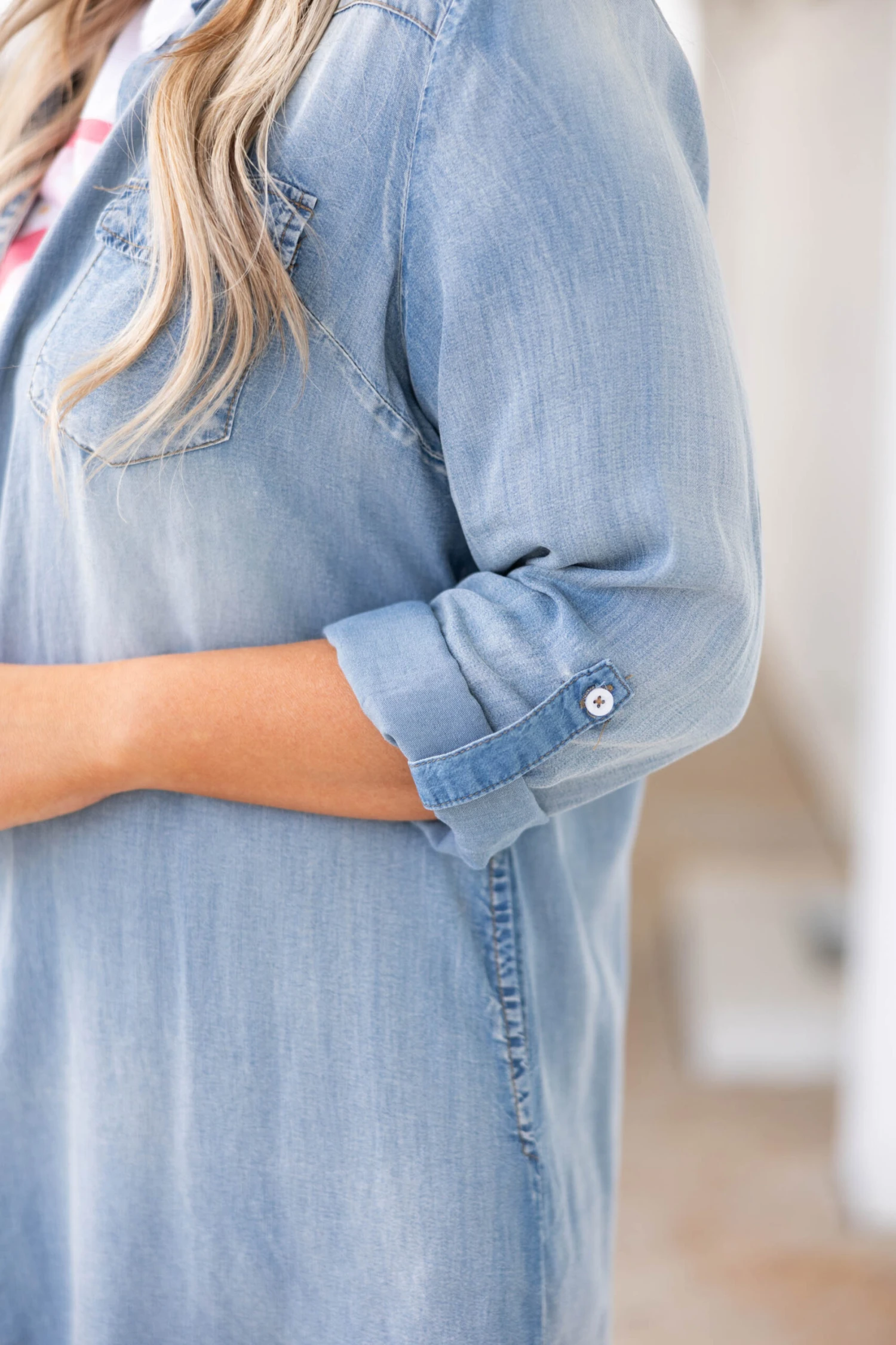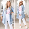 You’ll love how you look and feel in this gorgeous duster! The lovely denim color and comfy fit is perfect to layer over all of your favorite outfits! We see this duster styled with a cute top and skinnies or a fun dress and sandals for the ultimate chic look!
