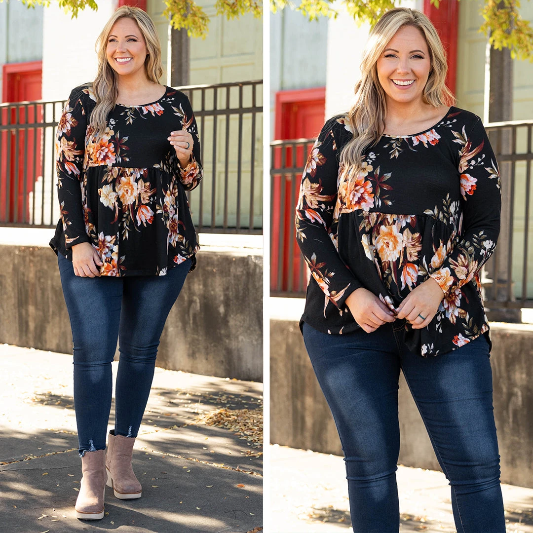 We will bring the flowers to you in this gorgeous top! This top has a classic black color with a trendy floral design that is just in time for the season! The babydoll design and stretchy fit is perfect for pairing with all your favorite bottoms this season!