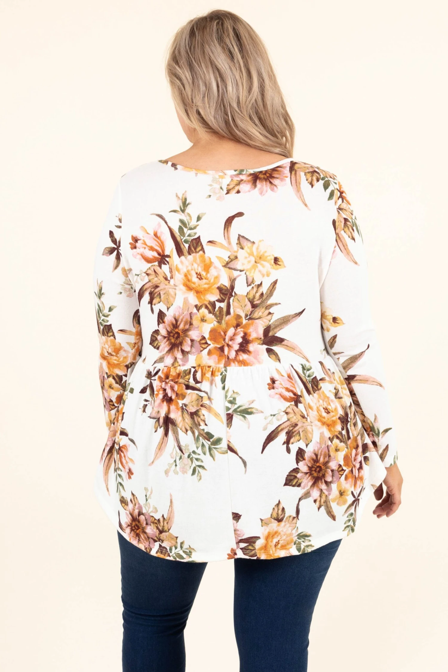 We will bring the flowers to you in this gorgeous top! This top has a soft ivory color with a trendy floral design that is just in time for the season! The babydoll design and stretchy fit is perfect for pairing with all your favorite bottoms this season!