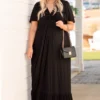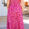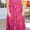We are so in love with this dress! It has a smocked bodice and ruffle detailing for a flattering fit! Its bold fuchsia color and abstract design make it a standout piece for any occasion! Show off your vibrant style with this dress all season long!