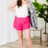 Grab these cuties for your next adventure! These shorts in bold hot pink are perfect for any occasion! Featuring an elastic waistband for comfortable wear and a functional zipper pocket for convenience! The vibrant color adds a pop of fun to your wardrobe while being versatile enough for the beach or lounging around the house! Elevate your style and stay comfortable with these shorts!
