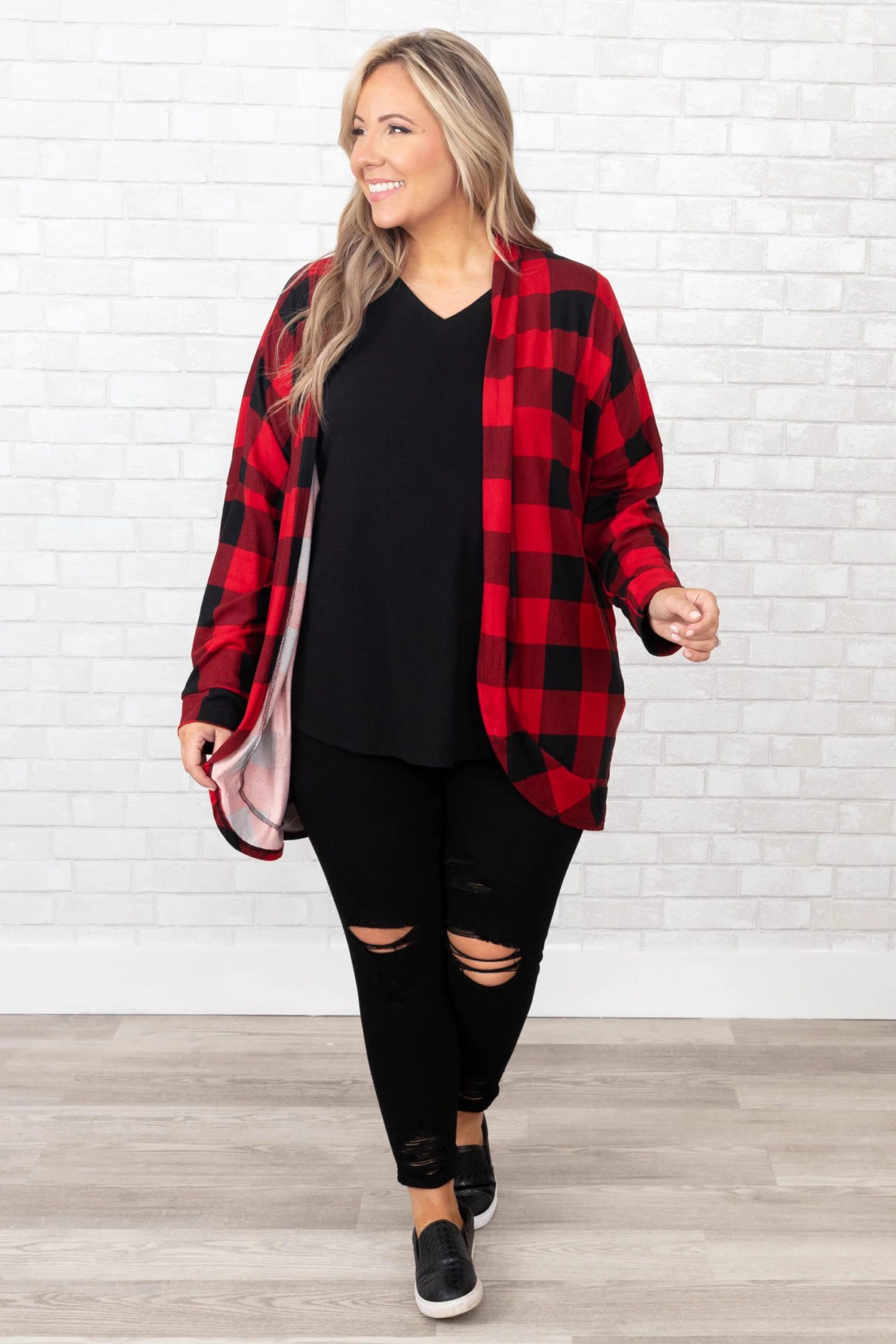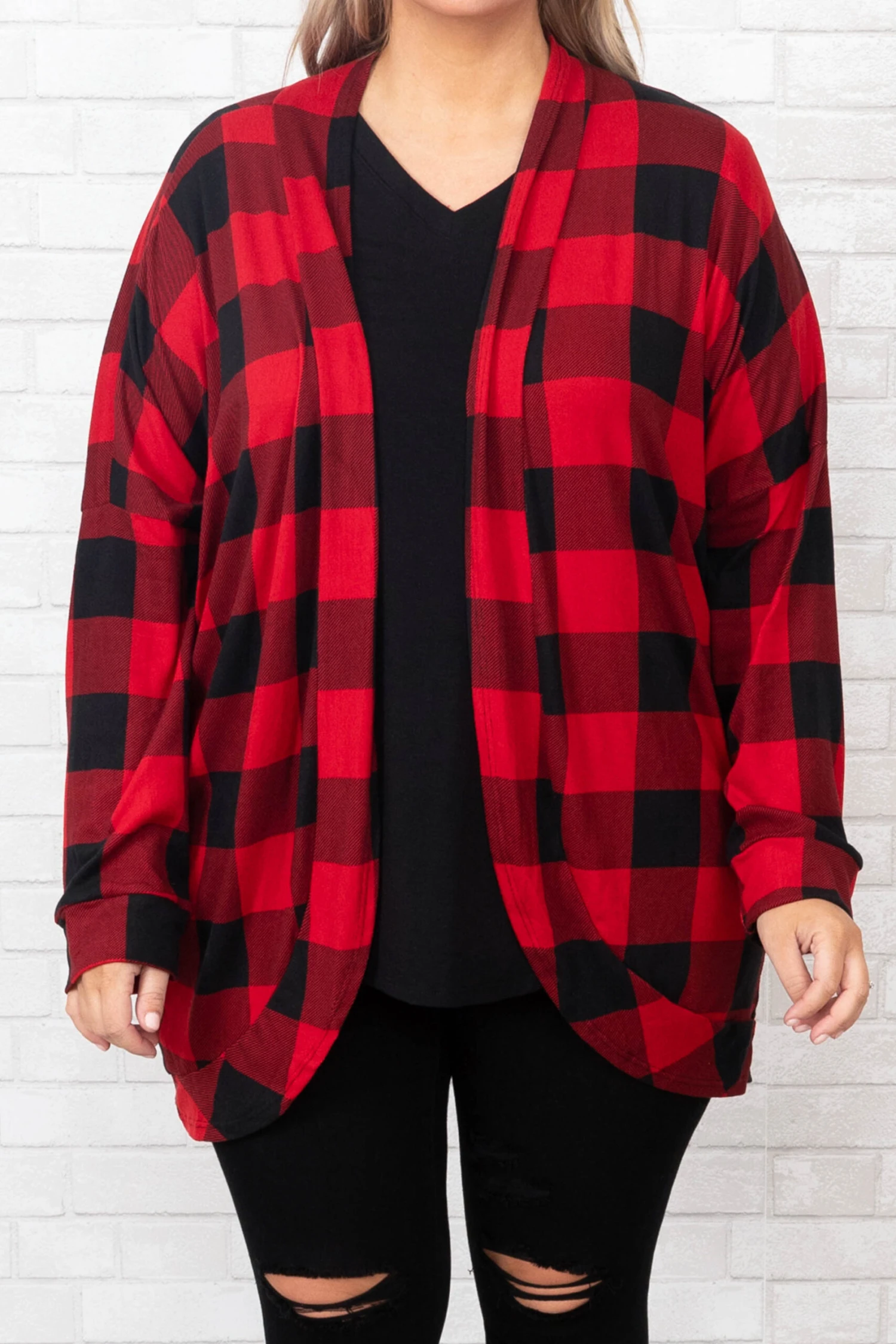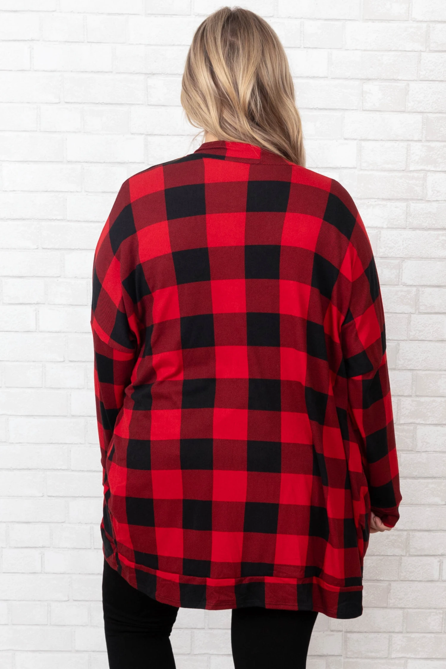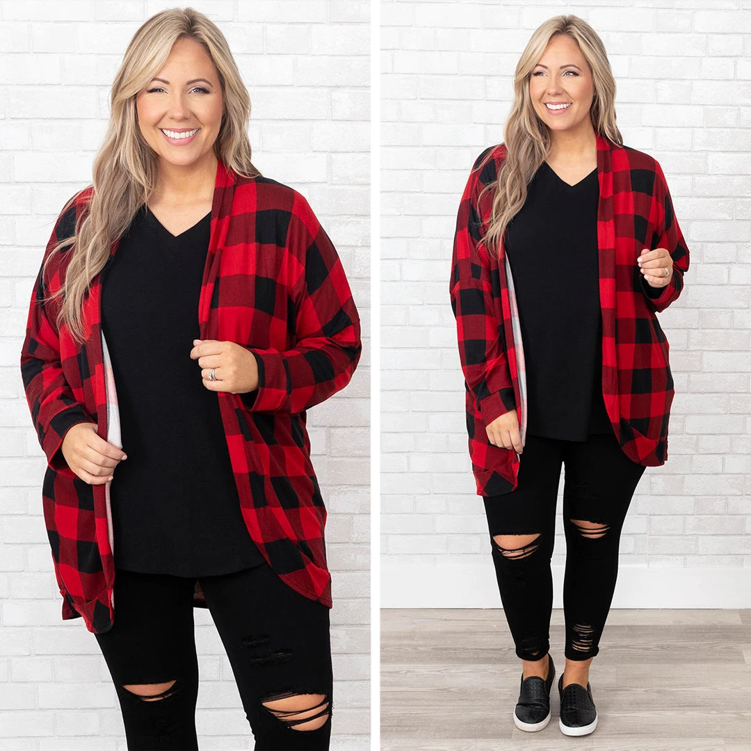 We have a winner! Get this trendy cardigan today! Buffalo plaid is the pattern of the season and we can’t get enough! This cardigan is so on-trend and features a figure-flattering fit and comfortable material for all-day wear! We see this cardigan paired with your favorite jeans and sneakers for a chic, festive look!