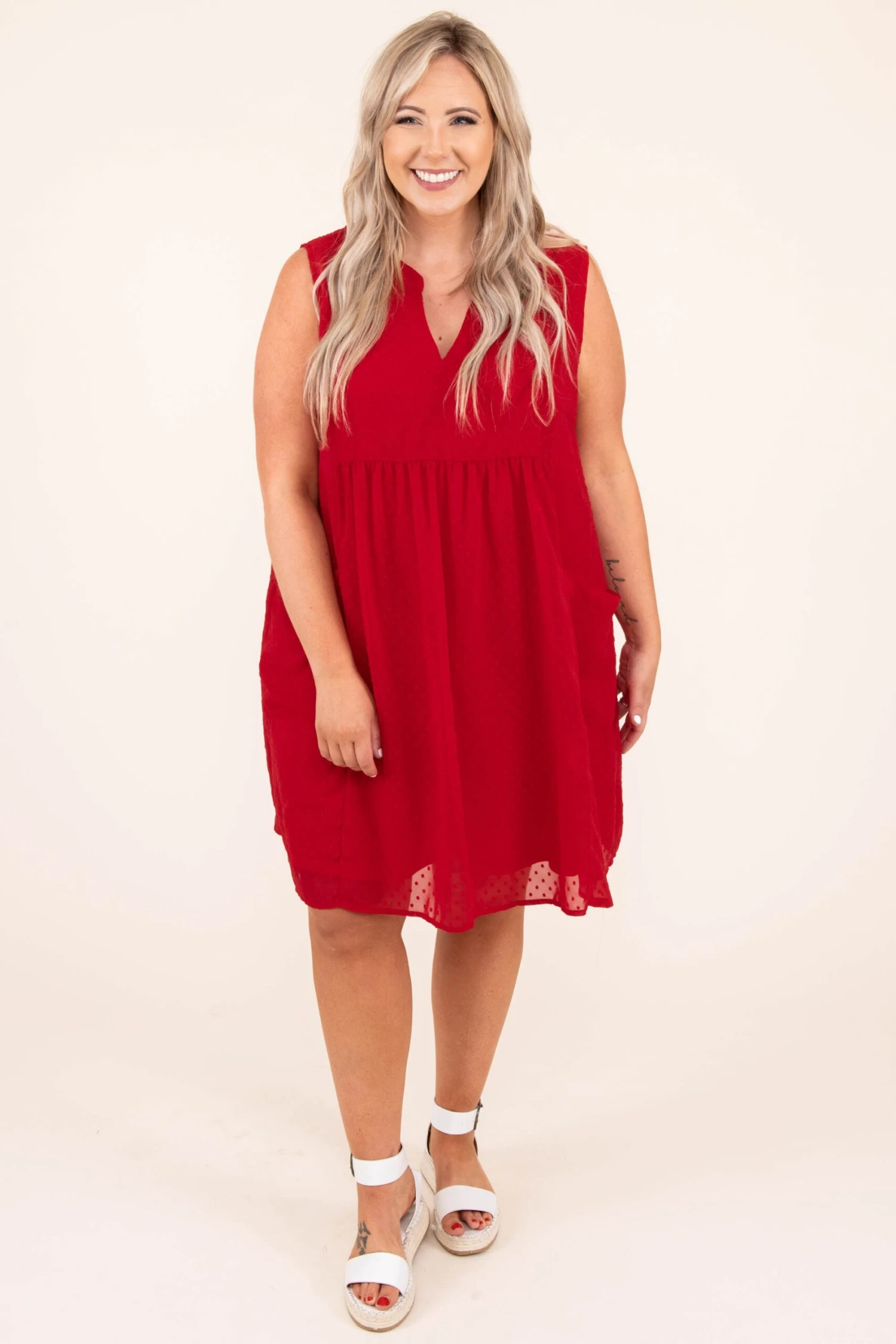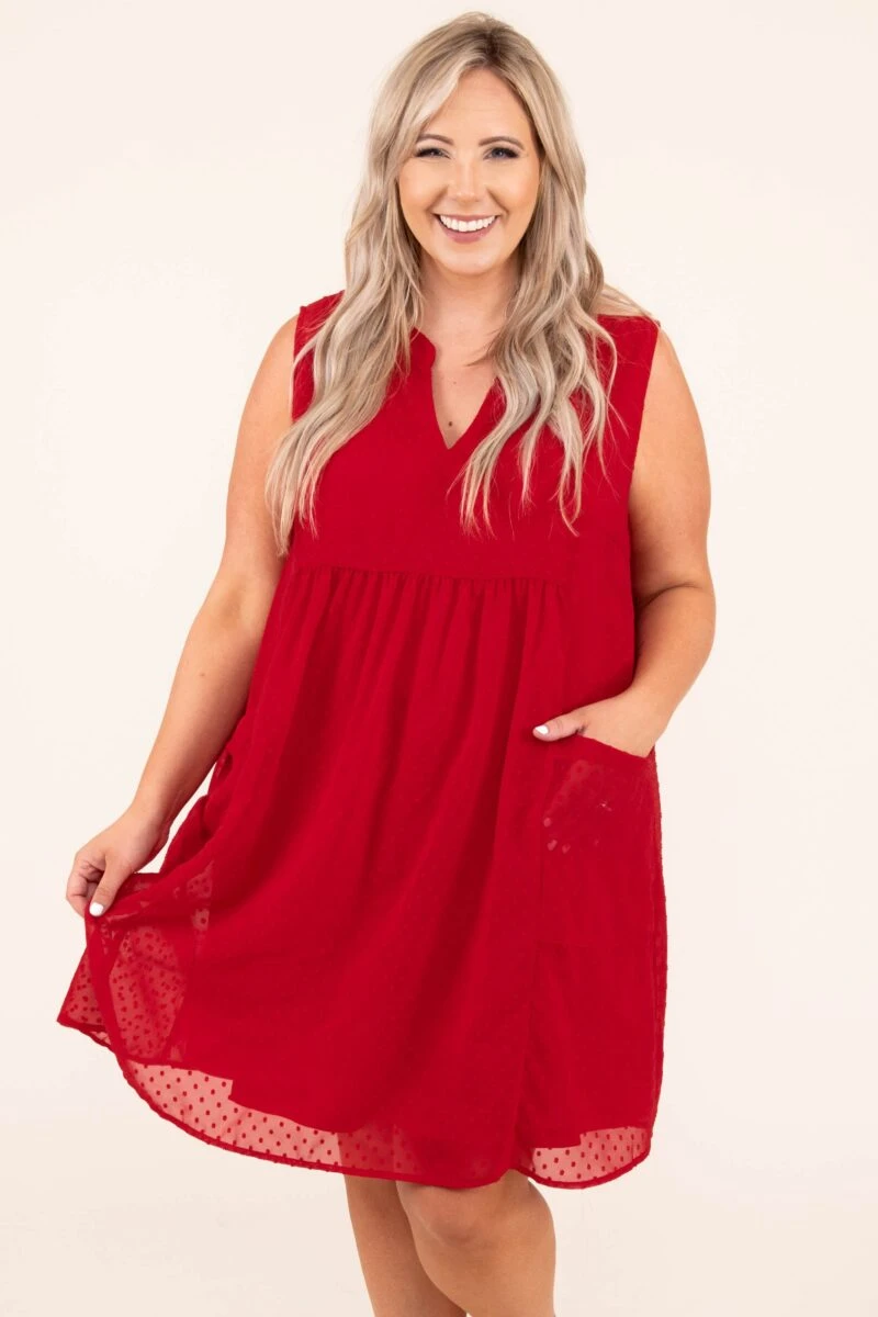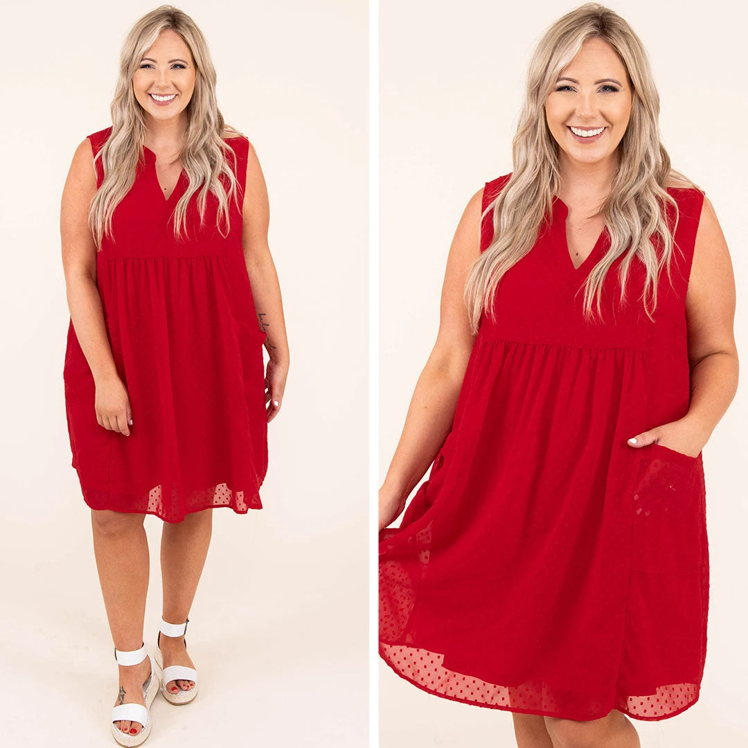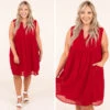 We know you already know the ropes of fashion, but this dress is next level! It features a beautiful bright red color that is sure to stand out for every occasion! The raised dot pattern is so on-trend and ties on the sleeves are the perfect added touch! This dress is figure-flattering for all body types and comfortable for all-day wear! Simply, pair this dress with your favorite heels and accessories for a chic, trendy outfit!