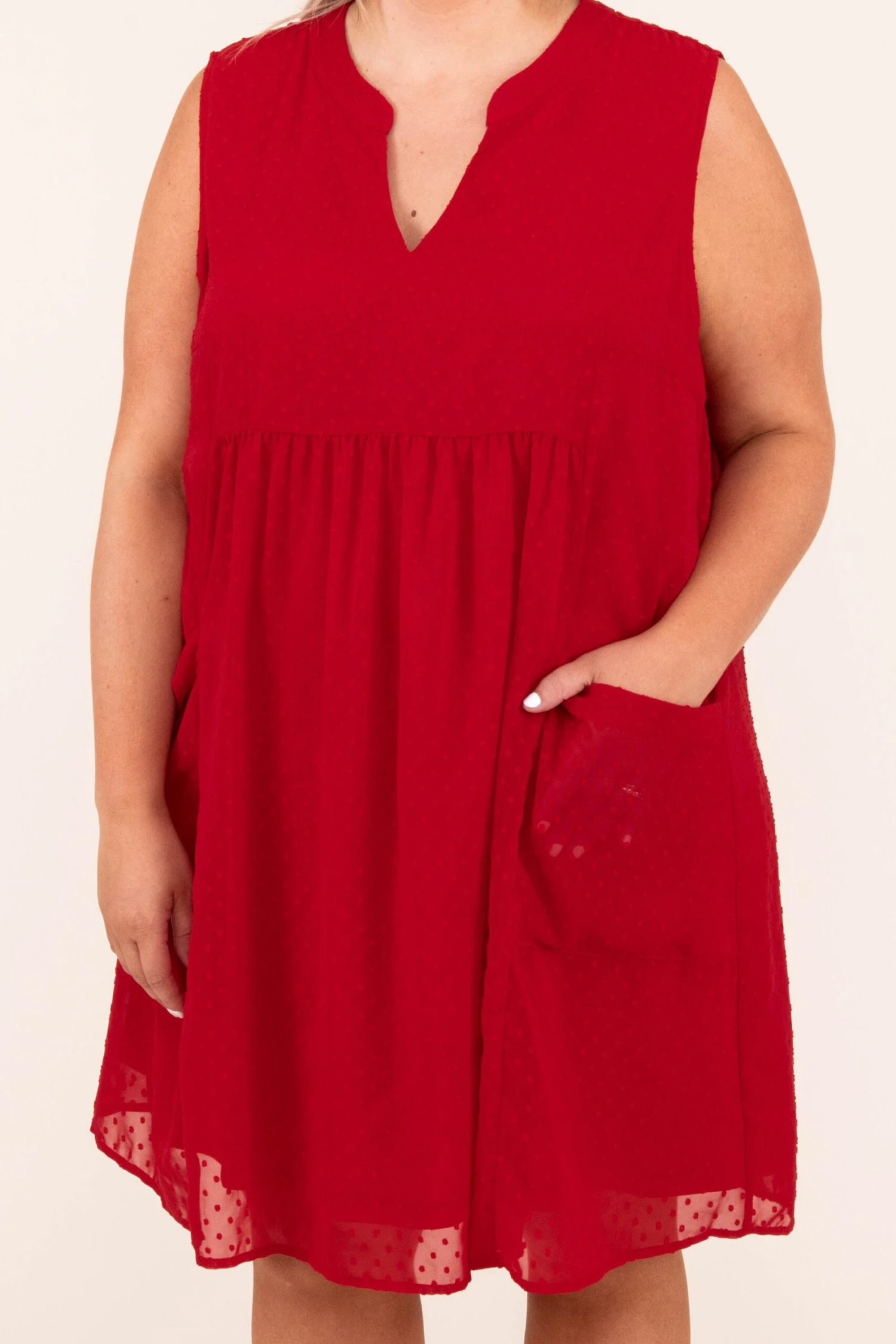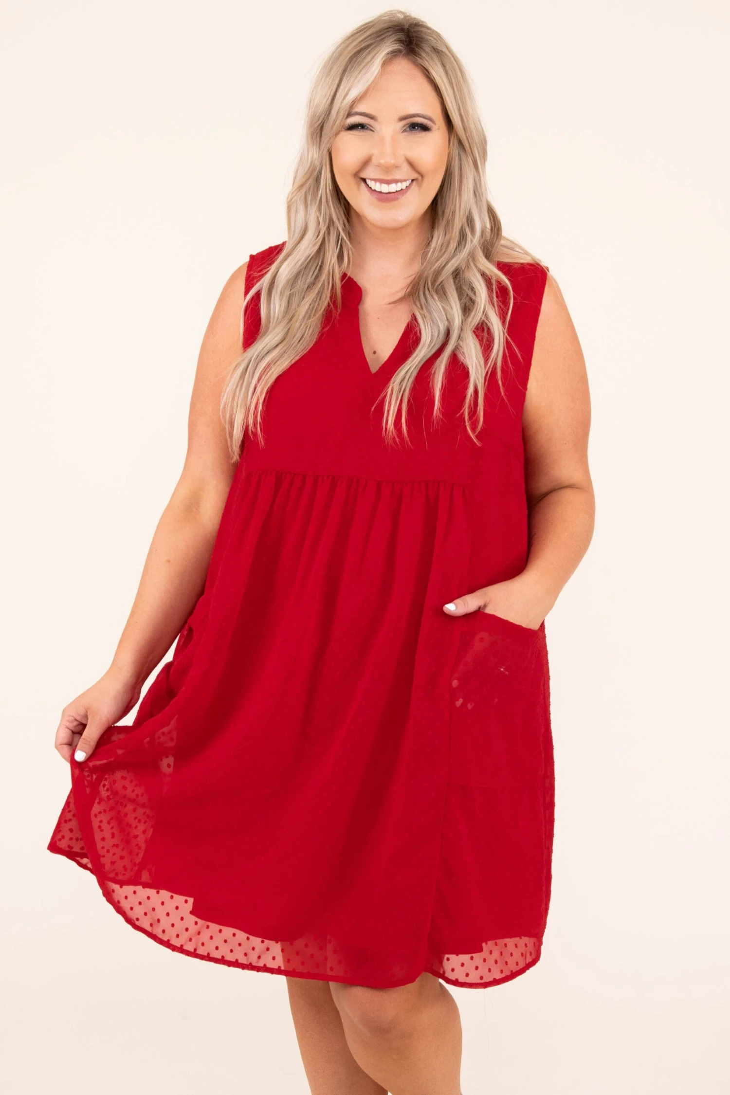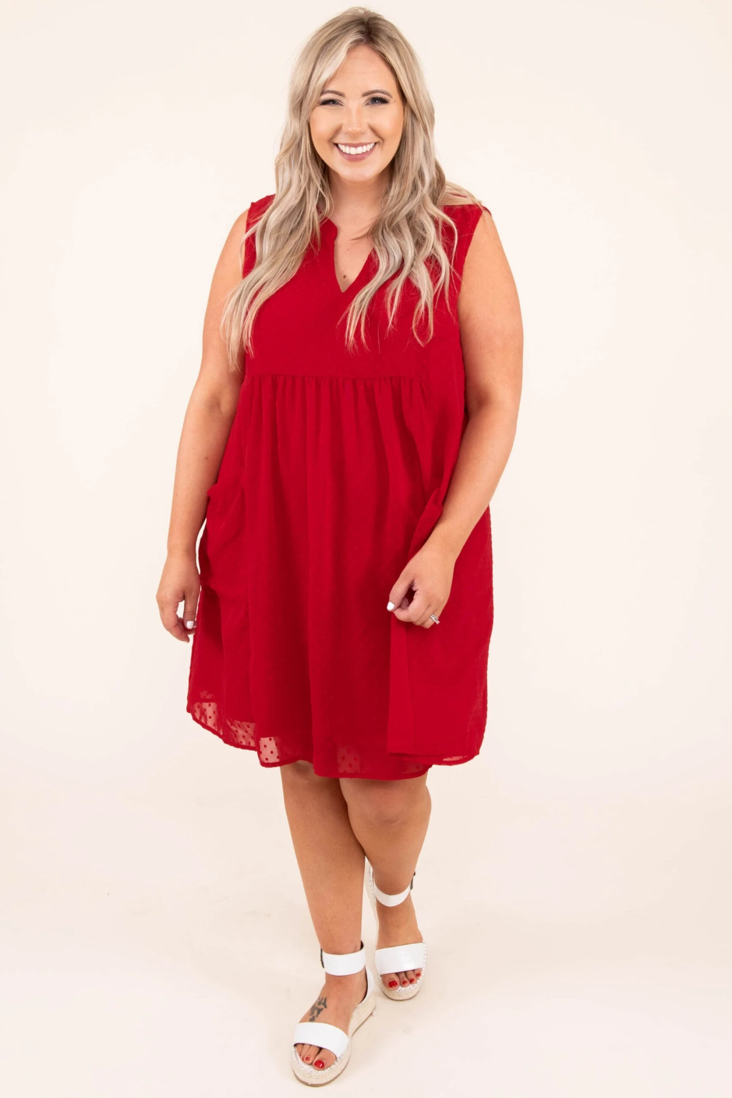 We know you already know the ropes of fashion, but this dress is next level! It features a beautiful bright red color that is sure to stand out for every occasion! The raised dot pattern is so on-trend and ties on the sleeves are the perfect added touch! This dress is figure-flattering for all body types and comfortable for all-day wear! Simply, pair this dress with your favorite heels and accessories for a chic, trendy outfit!