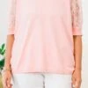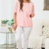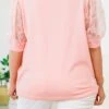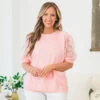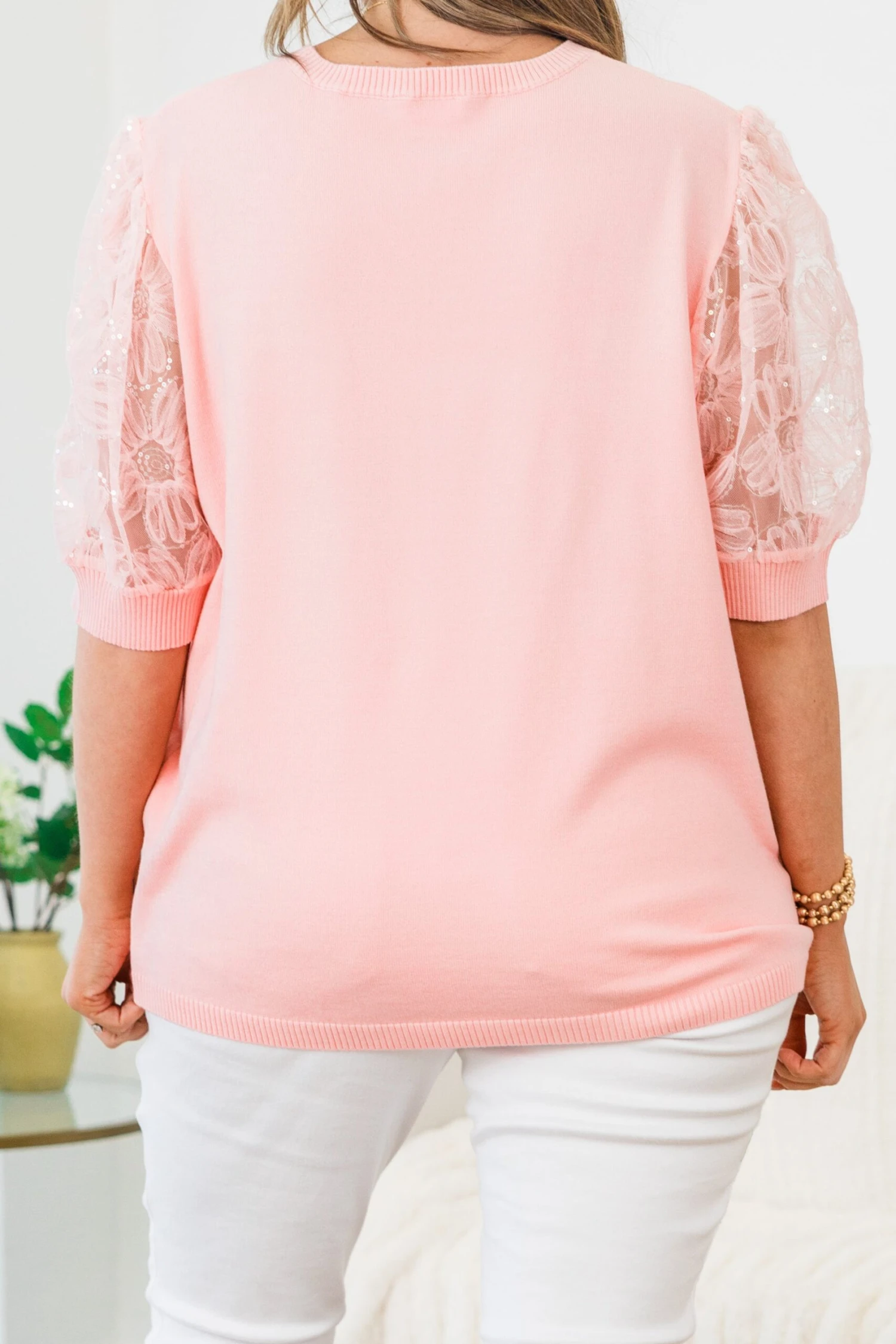 Indulge in the luxury of this top in classic pink! This short sleeve top features a round neckline and sheer sleeves adorned with a stunning floral design and glimmering sequins! The perfect balance of sophistication and allure, the black cuff adds the perfect finishing touch to this exclusive piece!