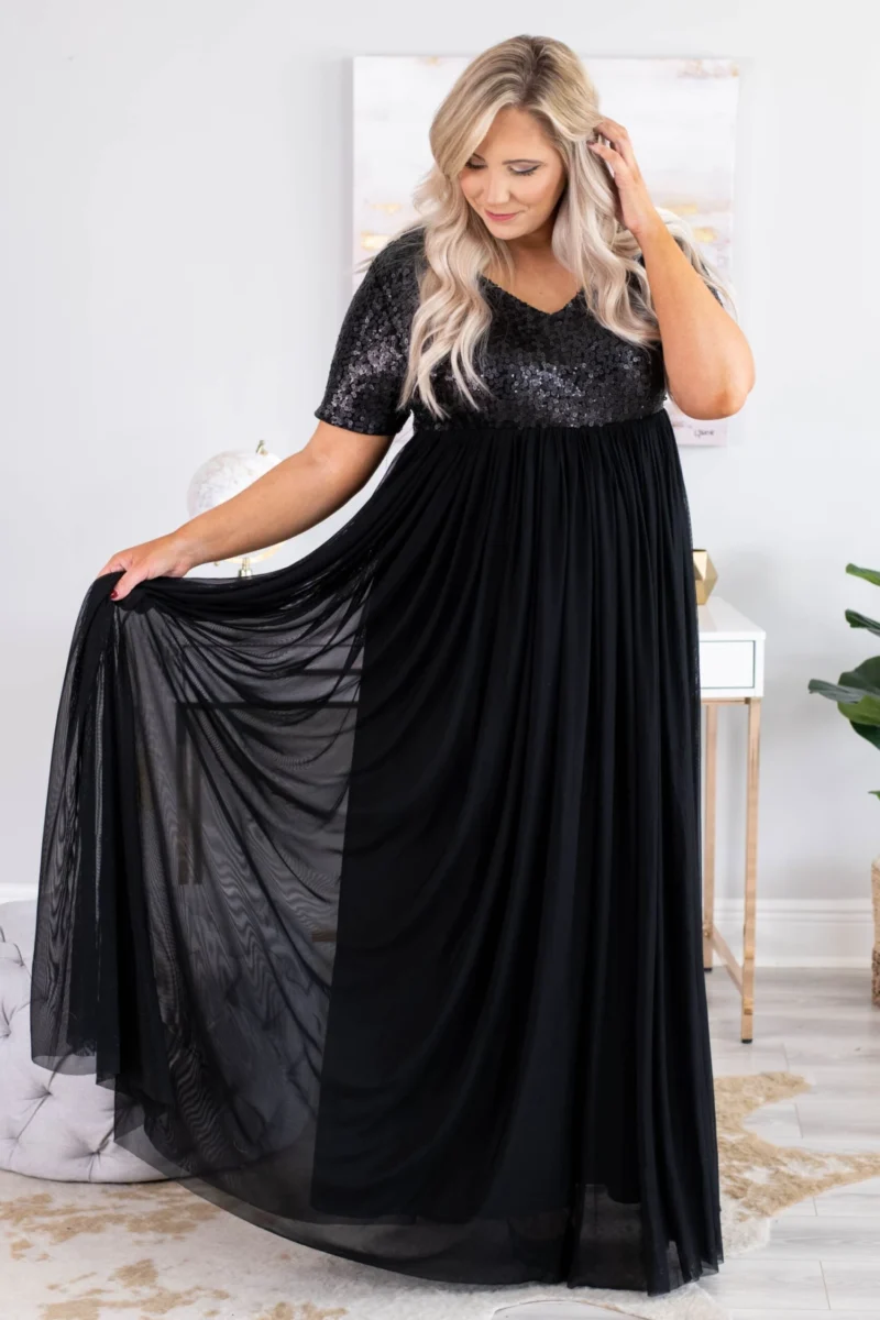 You are going to shine bright like a diamond in this dress! This dress is sure to stun for all of your new year events! We love the contrast between the sequined top and tulle skirt! This dress is comfortable to wear all night long, has a figure-flattering fit and all the sparkles you will ever need in a dress! Pair this dress with trendy heels and your favorite statement jewelry to complete the look!Â