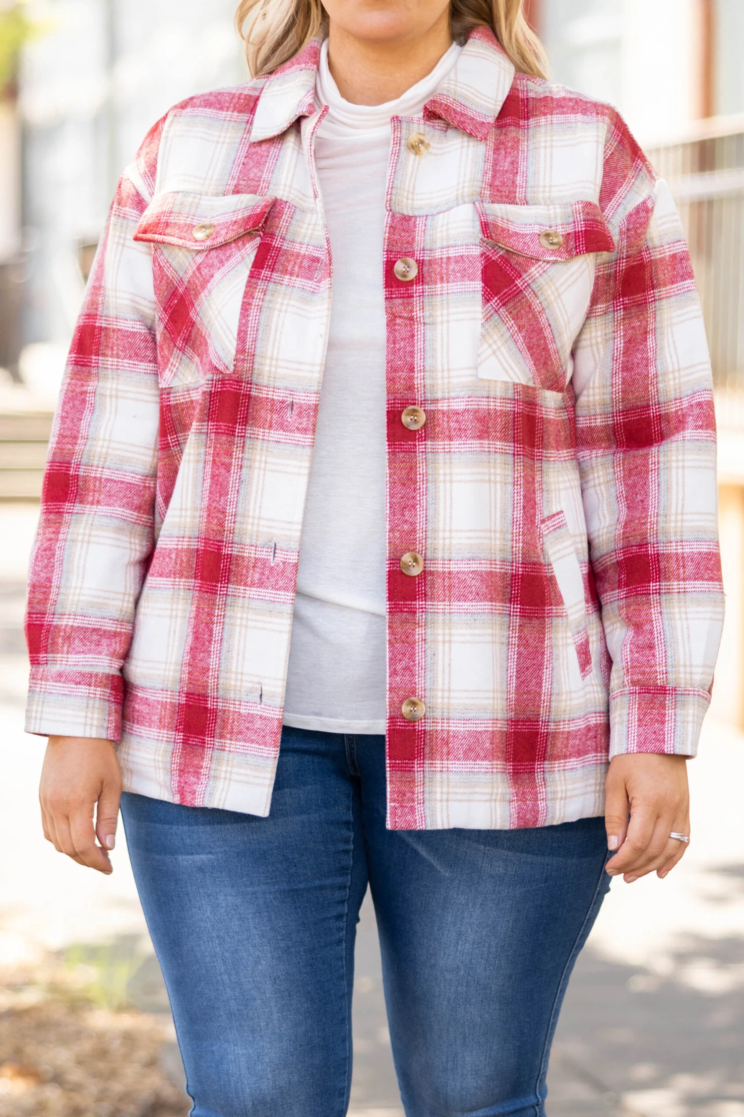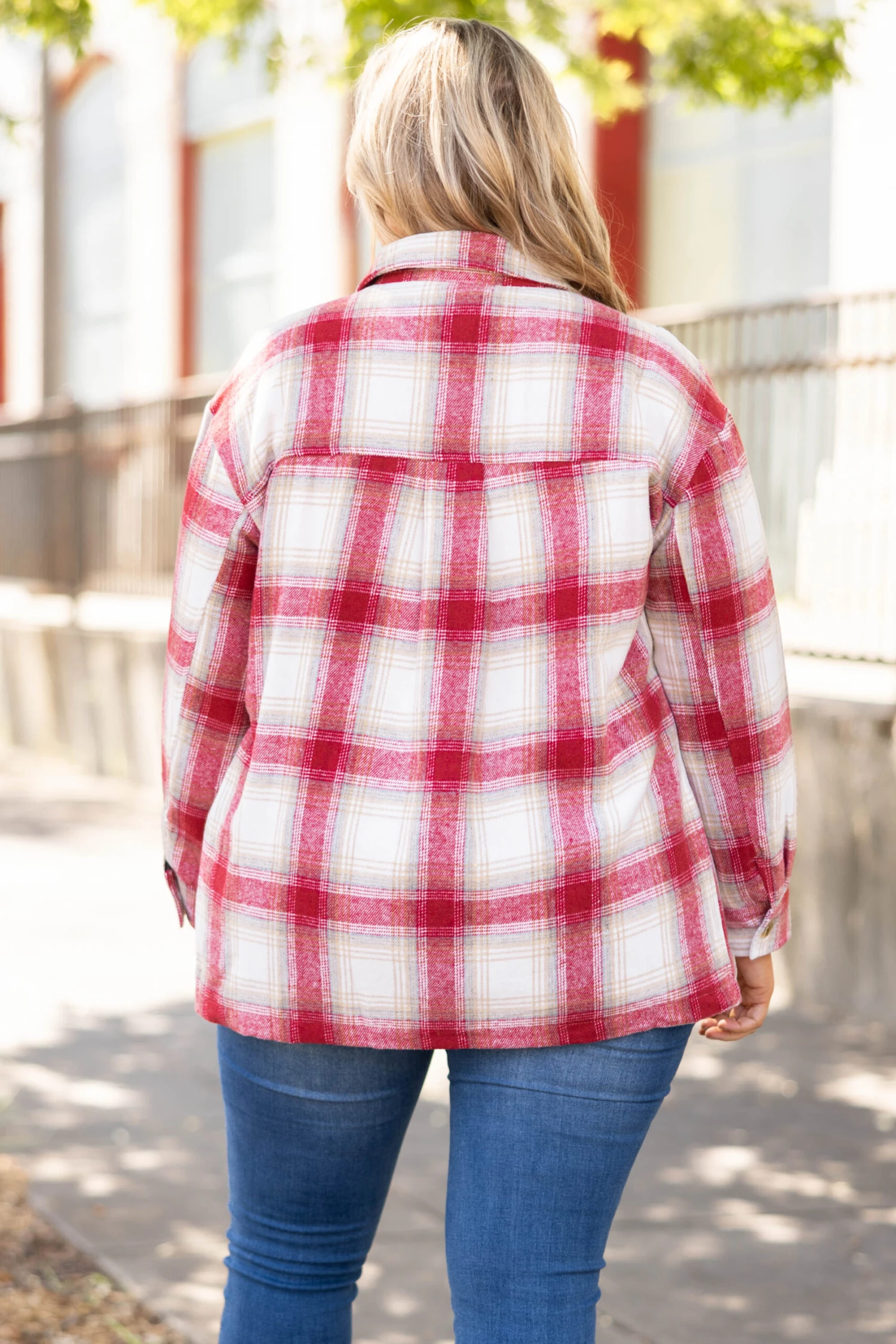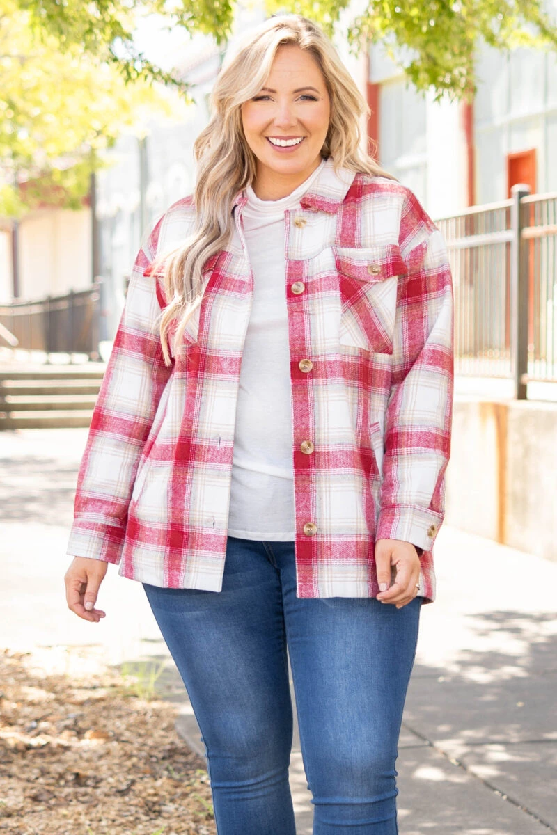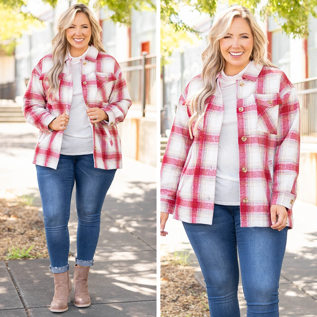 Don’t miss out on this gorgeous shacket! It’s no shock how cute and comfy it truly is! The red plaid pattern, functional pockets, and super cozy lining makes this the perfect piece to add to your wardrobe this season! Pair this shacket with all your favorite outfits for an effortlessly trendy look!Â