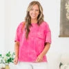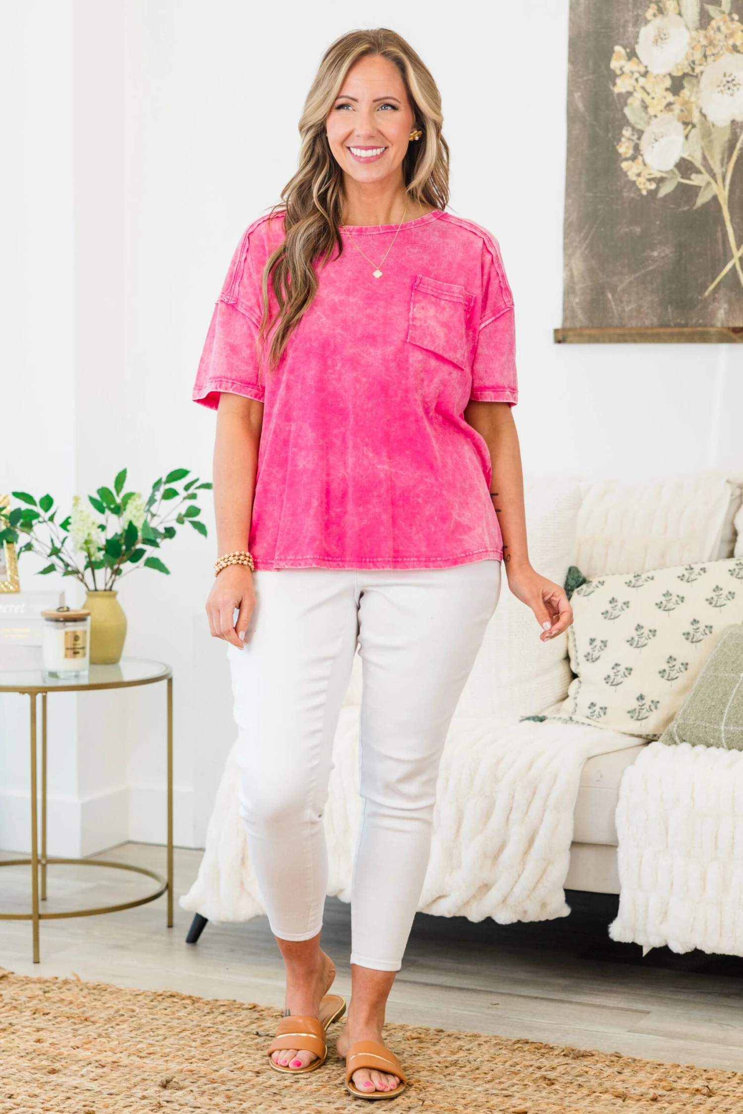 This hot pink top features exposed seam detailing and a unique acid wash fabric! With a front pocket and rounded neck, it’s perfect for casual wear! The acid wash fabric adds a trendy touch while the front pocket! Stay stylish and comfortable with this top!