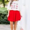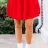 Get your game day spirit on with this red skort! This comfortable and stylish skort lets you cheer on your team in style! Simply pair it with your favorite game day graphic tee and fashion sneakers for the perfect game day look! Plus, the elastic waistband ensures a comfortable fit all day long!
