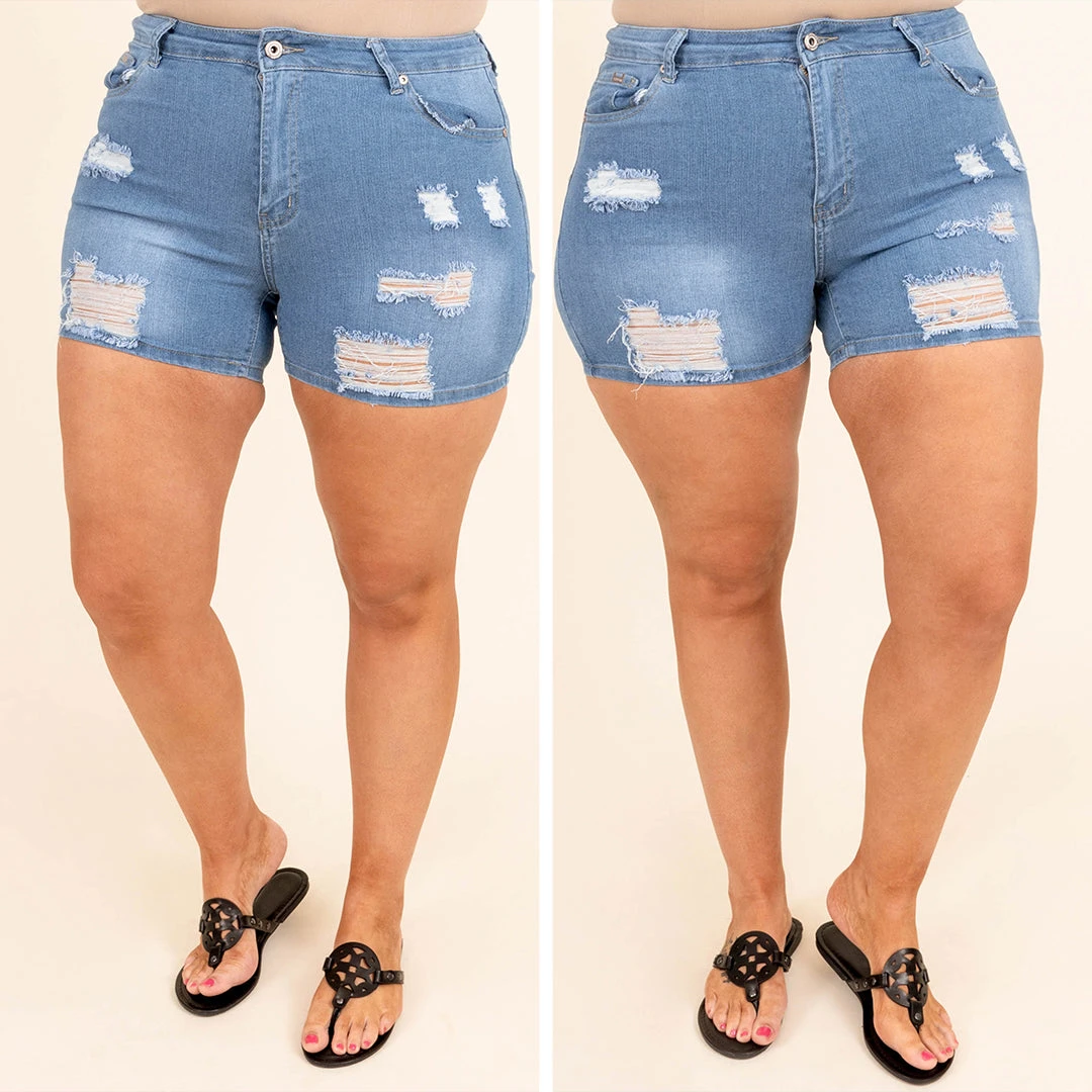 Show off your legs in these shorts! The denim blue color is so perfect for pairing with anything and the distressed style is so in right now! Style these with any top for a classic look!