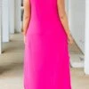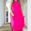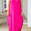 The truth is you need this dress! This dress has a pretty fuchsia color, the softest material, and ample stretch to allow comfort all day long! This dress is perfect for a day out soaking up the sun! Pair with some cute accessories and heels or sandals for a comfortable, chic look!