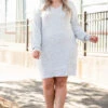 We are simply overjoyed about how gorgeous this dress is! This dress has a soft gray color with with a knitted design that is perfect for a date night or a casual holiday party! The flirty, figure flattering fit is super sweet! Style this dress with boots and cute accessories for an effortlessly chic look!