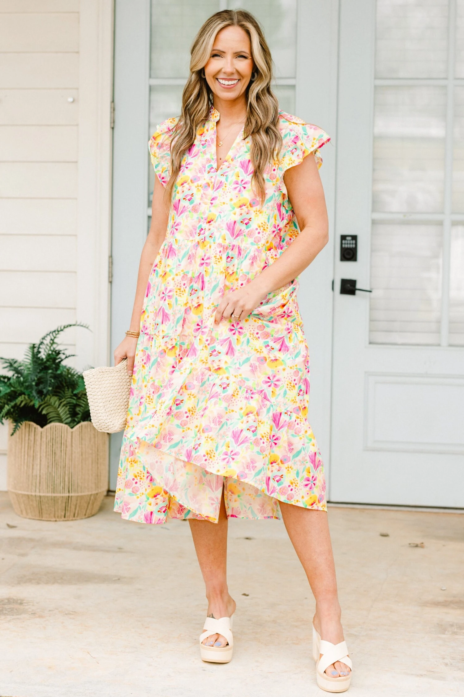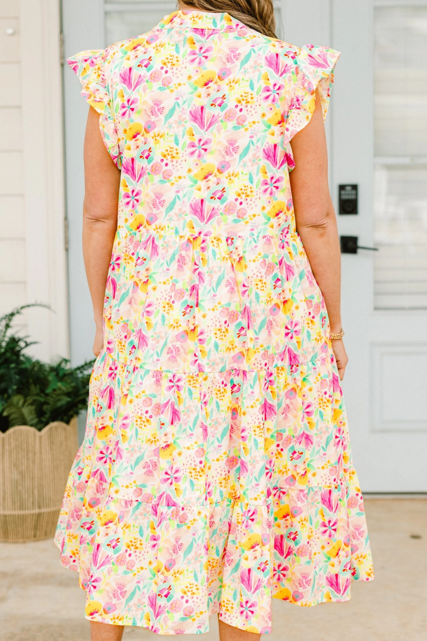 Flaunt your vibrant style in the Simply The Vibe Midi Dress! This pink stunner features a playful v-neckline, ruffled cap sleeves, and a tiered skirt for a flirty touch! And with the added convenience of pockets, this dress is both stylish and practical! Don’t be afraid to make a statement with the bold floral print! The perfect dress for any occasion!