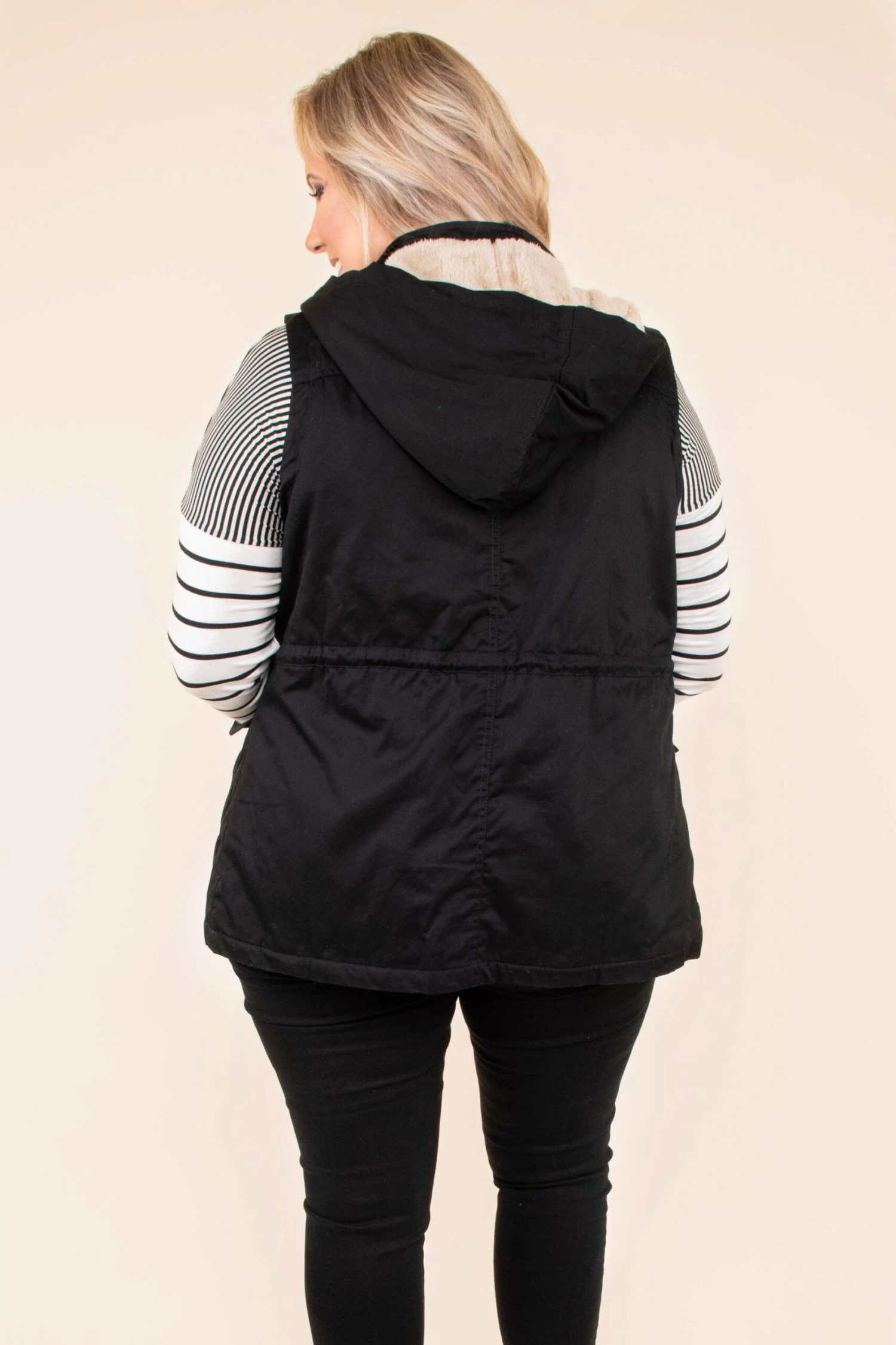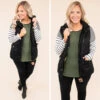 Sip cider with your girls in this trendy vest! This vest has a bold black color with a classic design you can dress up or down and style for every occasion! Its fur-lining will keep you warm and cozy all day long, while the relaxed fit will flatter your figure in the best way! Simply, style this vest with skinnies and booties for an easy everyday look!
