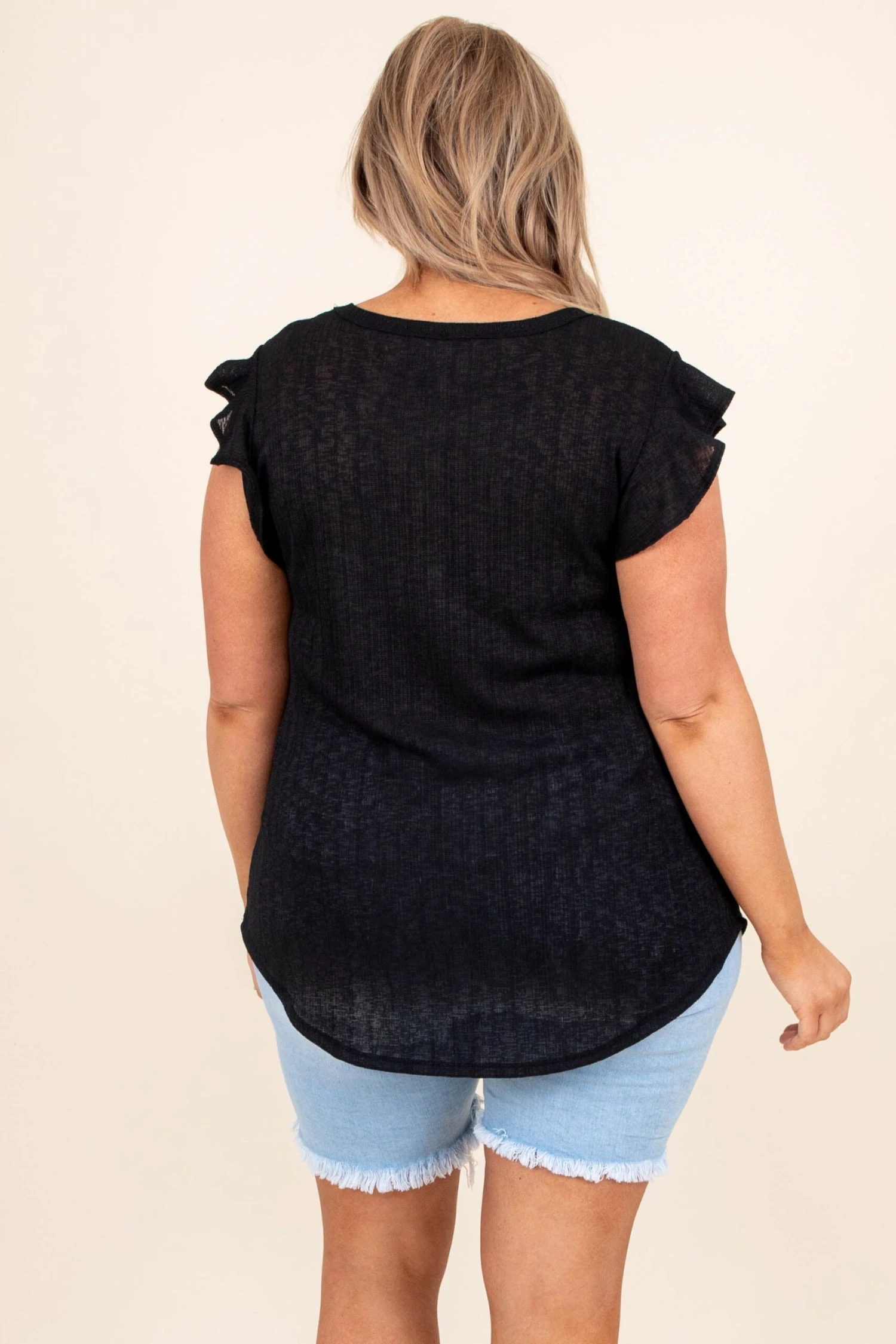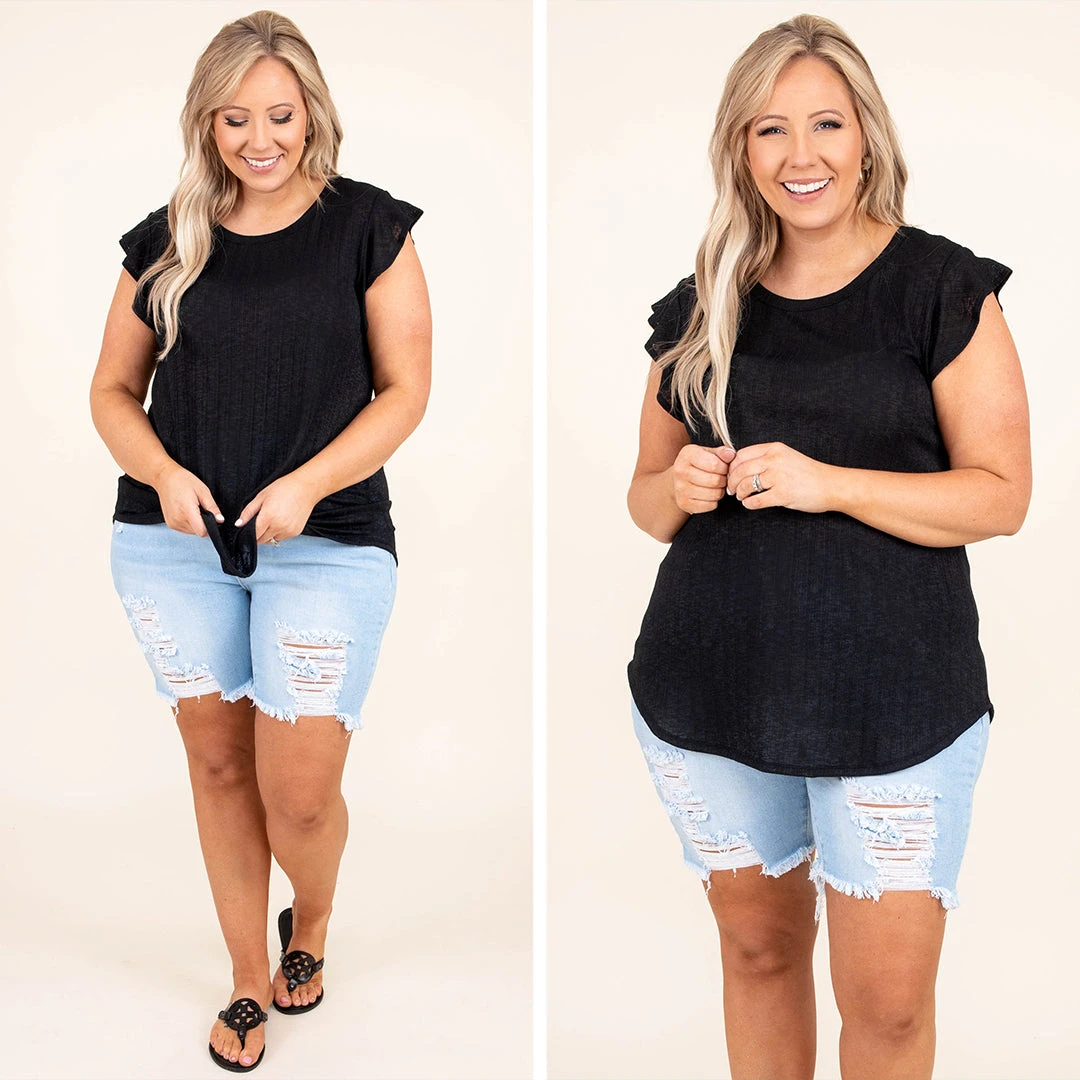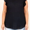 You need this top in your lineup! It has a cool textured fabric and sweet ruffle sleeves that will spice up your outfit! Style this cutie with a cami for full coverage with denim shorts and sandals for the perfect look!