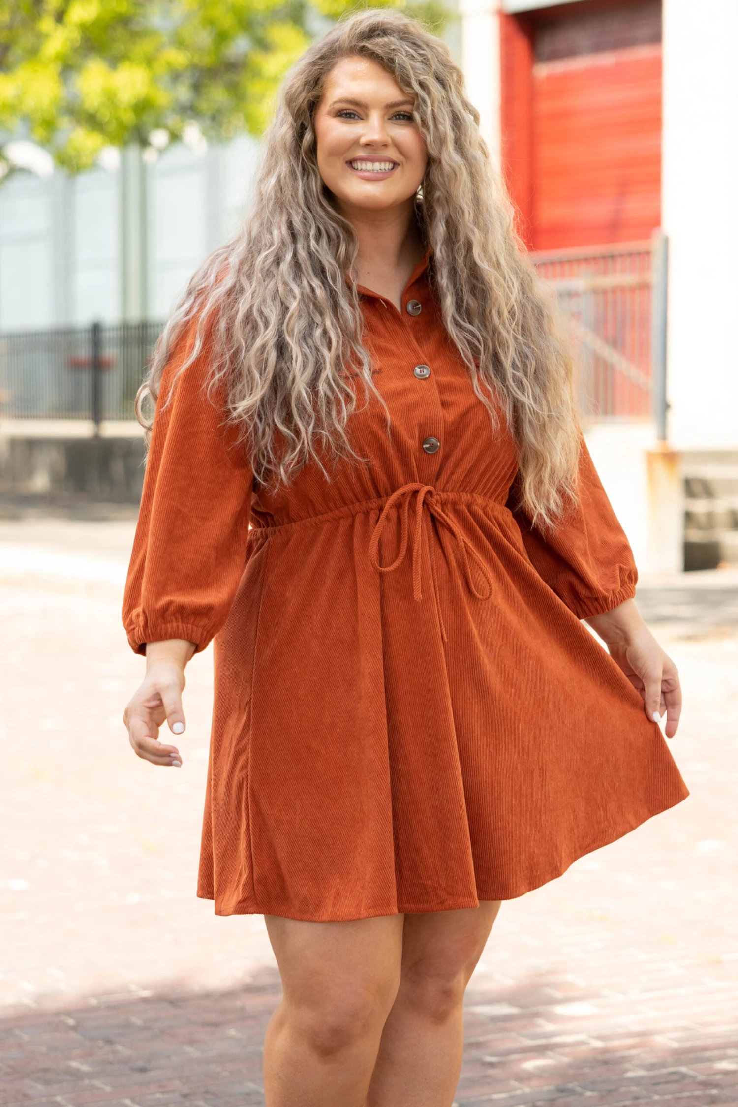 You’ll want to walk at a slow pace so that the crowd can get a good look at how stunning you look in this dress! This dress has a bold orange color and a lovely textured design that is so sweet! The adorable tie and functional buttons on the front add a touch of flare! Style this dress with some cute accessories and wedges for a sassy, chic look! Â