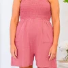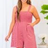 Effortlessly stylish and comfortable, our Slow Saturday Romper in Rose/Ivory is the perfect choice for a leisurely stroll through the park! The smocked bodice and functional pockets make it both practical and fashionable, while the beautiful bold, stripe pattern, and stretchy fabric provide ultimate comfort! Don’t miss out on this must-have piece!