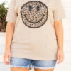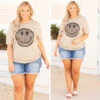 This tee is sure to put a smile on your face! The tan color looks good paired with anything and the smiley face leopard graphic is the perfect mix of sassy and sweet! This looks so good when paired with jean shorts and sandals for a casual chic look!