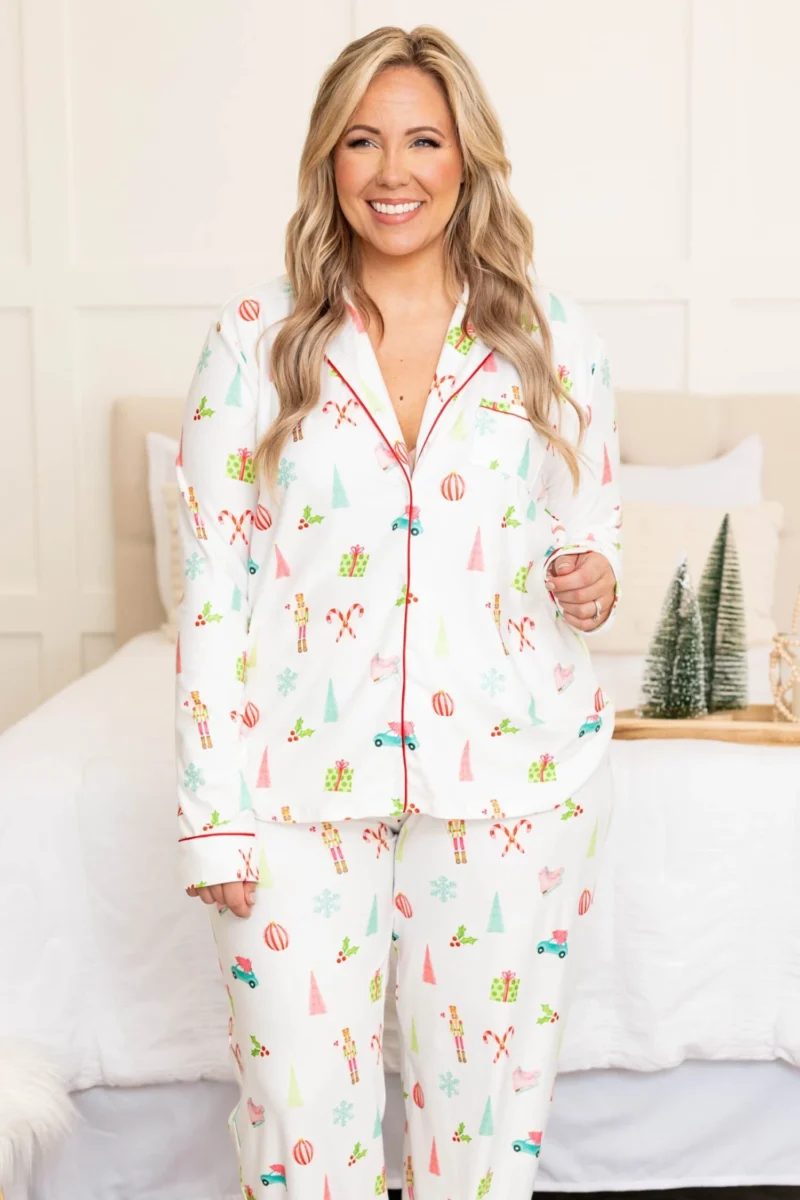 Let us make your wishes come true with this adorable pajama top! This top has a classic white color and it is SUPER comfy! The festive pattern and cozy, flattering fit is perfect for lounging around all season long!