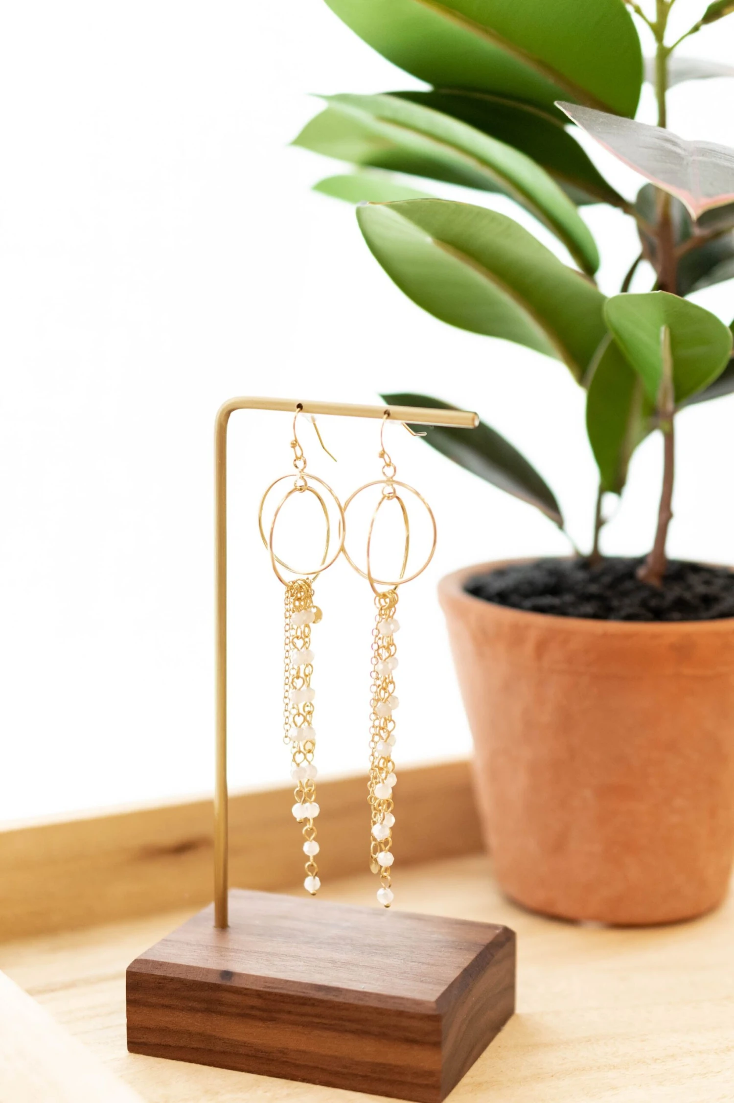 These earrings are super gorgeous and shiny! They have a classic gold color that will pair easily with all of your favorite outfits throughout the season! The dangle style and dainty crystals are simply breathtaking! Style these earrings with a classy dress or cute top and skinnies for an effortlessly chic look!
