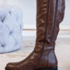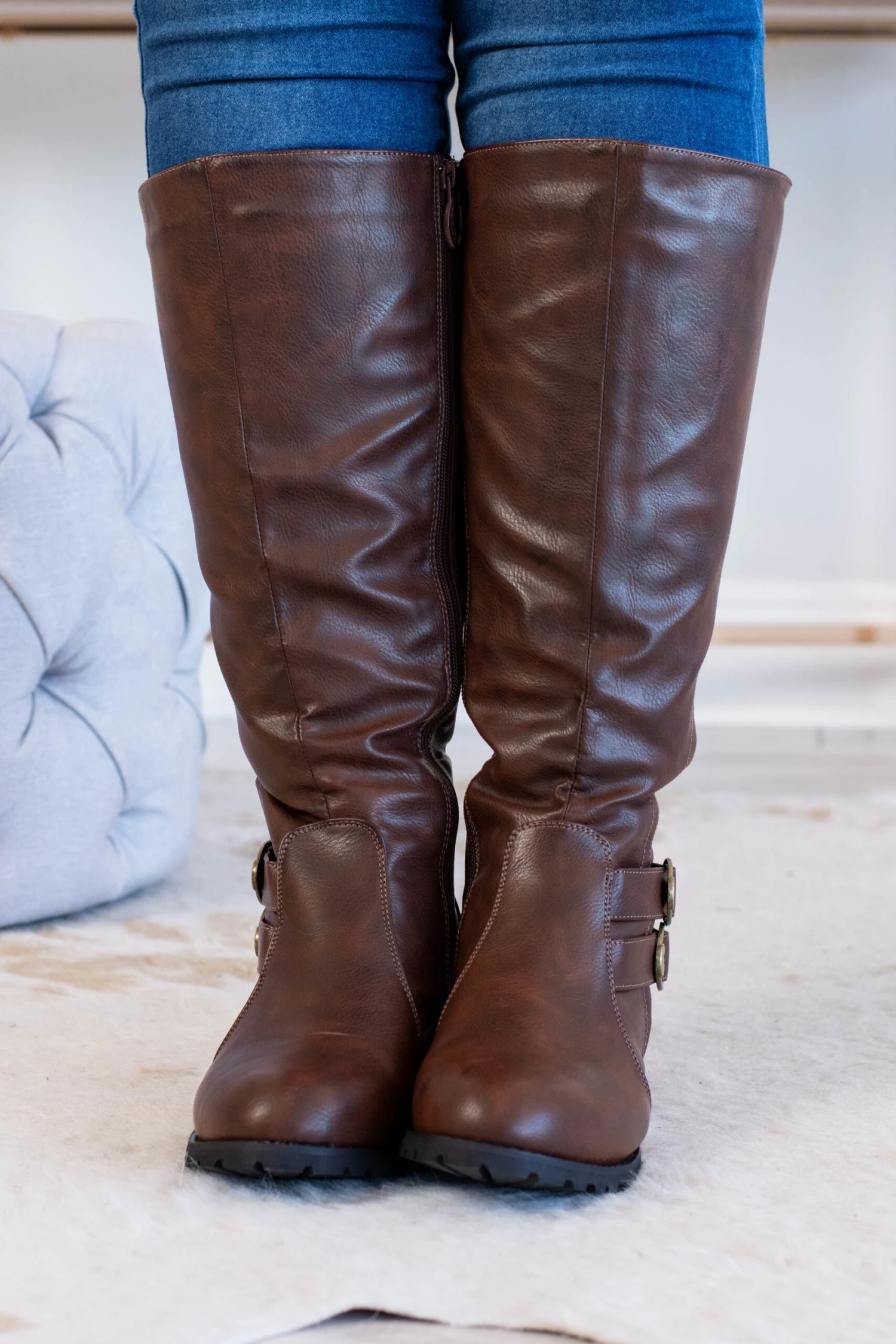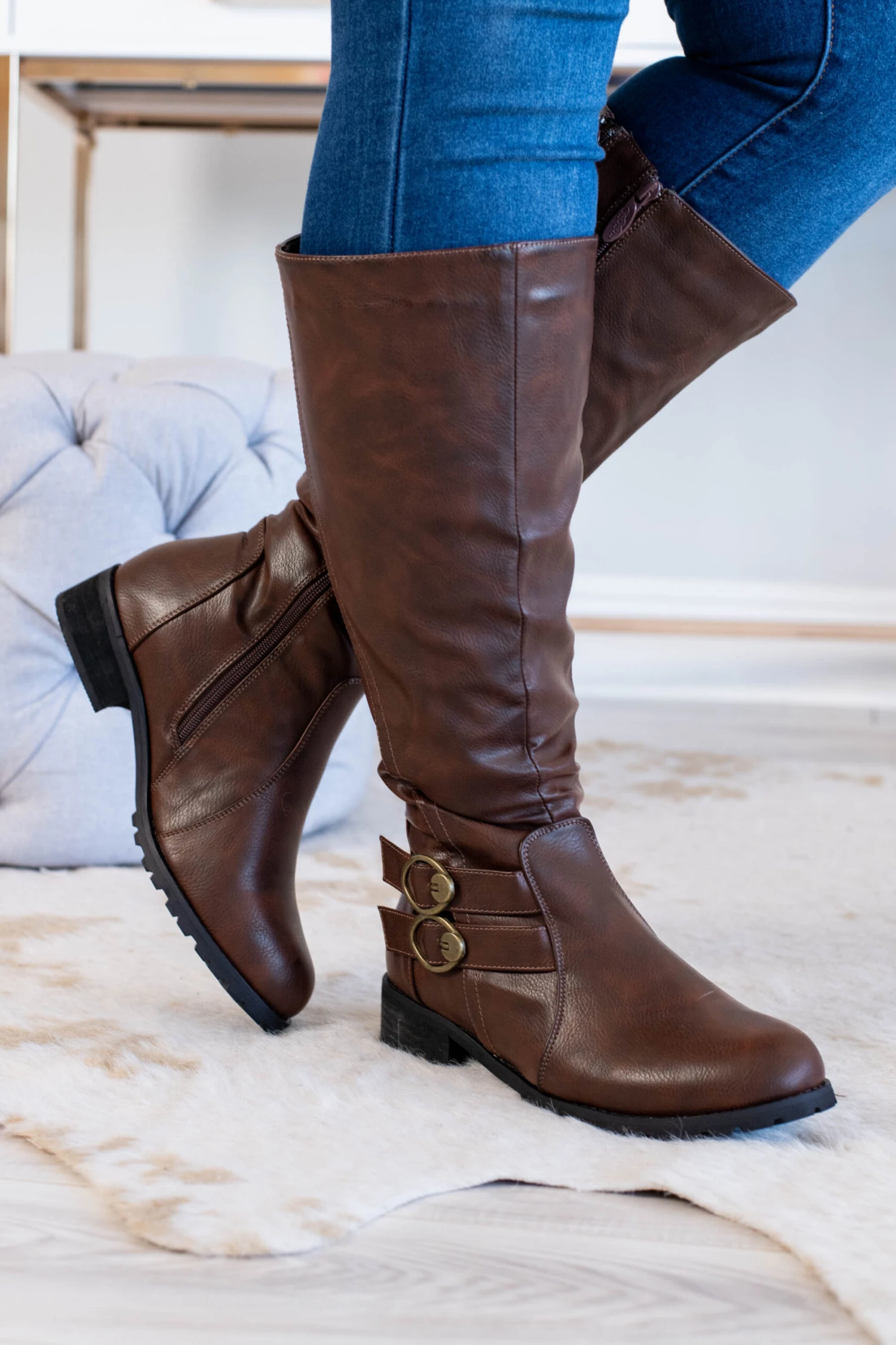 These boots can be solely yours with just one click! Add these trendy boots to your cart now! They have a classic cognac color you can dress up or down and style with everything in your wardrobe! They feature the cutest buckle detail, have a tall design, and an adjustable wide calf fit you’ll want to wear all day long! The extra zipper detail allows for an additional three inches of width, and did we mention how easy they are to style? Pair these boots with skinnies or a patterned dress for an effortlessly chic look!