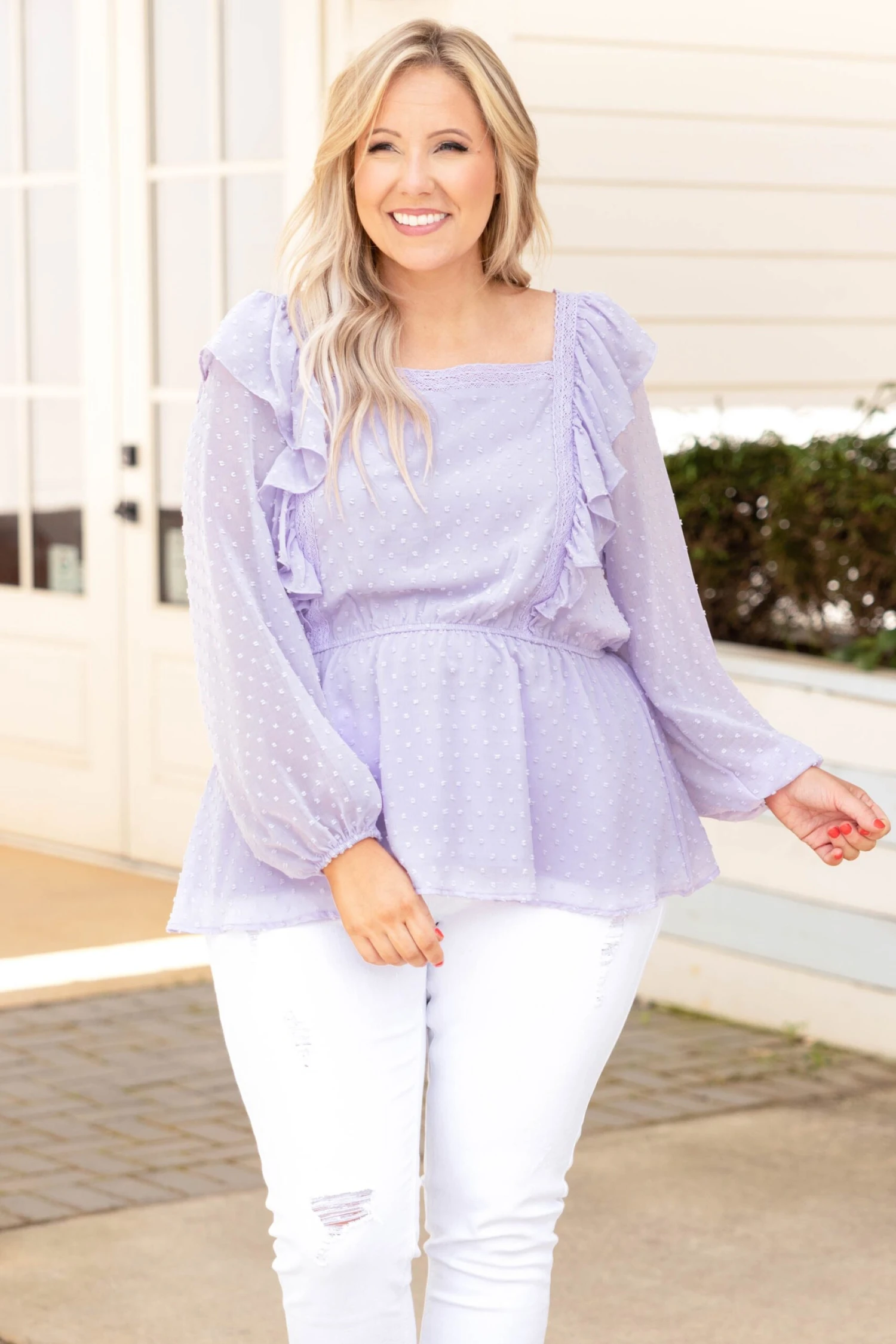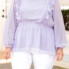 No one will be like you in this top! This cutie has a raised dot pattern with a sweet ruffle on the front and a cinched waist to totally flatter any figure! We love the trendy bubble sleeves and the sweet feminine feel of this top! Pair it with skinnies and sandals for a posh look!