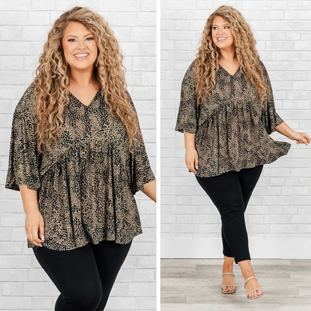 Don’t miss your chance to grab this beauty! This top is a trendy and stylish addition to your wardrobe! Its leopard pattern adds a touch of sophistication, while the stretchy and comfy babydoll design ensures a perfect fit! This top is the perfect color for the season and pairs well with cute pants and heels for a classy chic look!