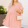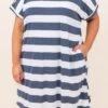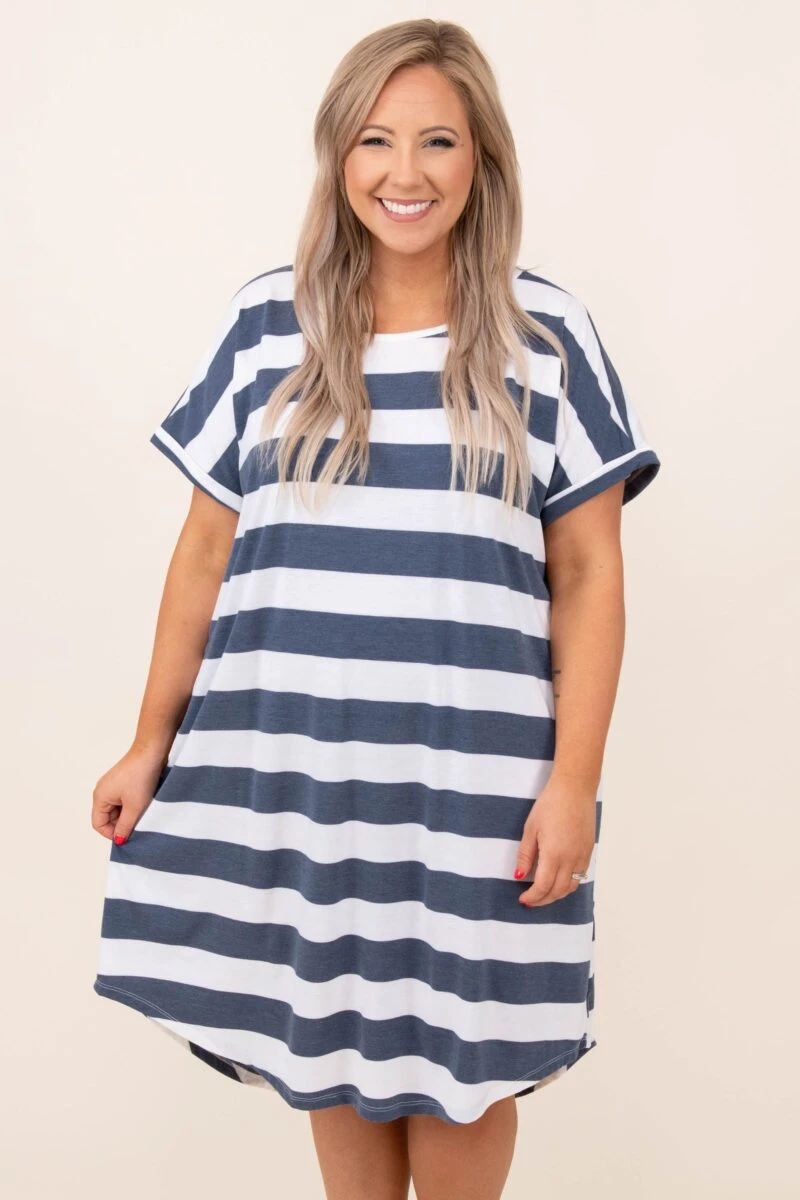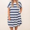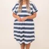 This is the dress you have been searching for! This dress has a simple stripe pattern with neutral colors you can style for every occasion! It’s comfortable for all-day wear, has a flowy fit, and features the cutest cuffed sleeves! Pair this dress with sandals or wedges for an effortlessly chic look!Â