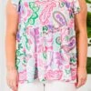 We simply adore this dazzling top! It features a pretty paisley pattern and flutter sleeves, making it a lovely addition to your wardrobe! The babydoll design offers a comfortable and stylish fit while the ivory multi color makes it perfect for the season!