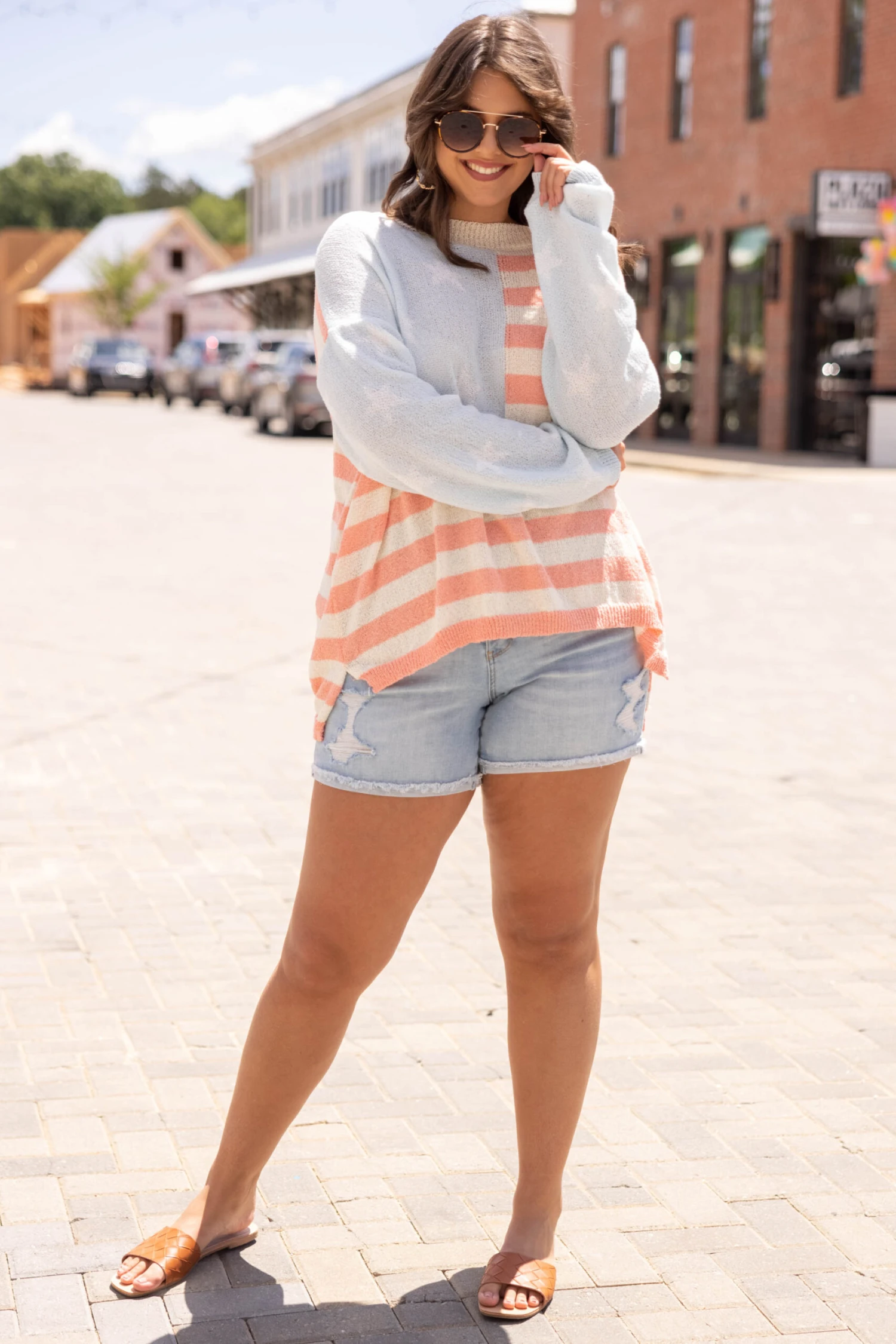 Look like a star when you’re wearing this sweater! This sweater has a patriotic print you can wear all season long! It’s comfortable for all-day wear, has an oversized fit, and looks just like the American flag we know and love! Style this sweater with shorts and sandals for an effortlessly trendy look!