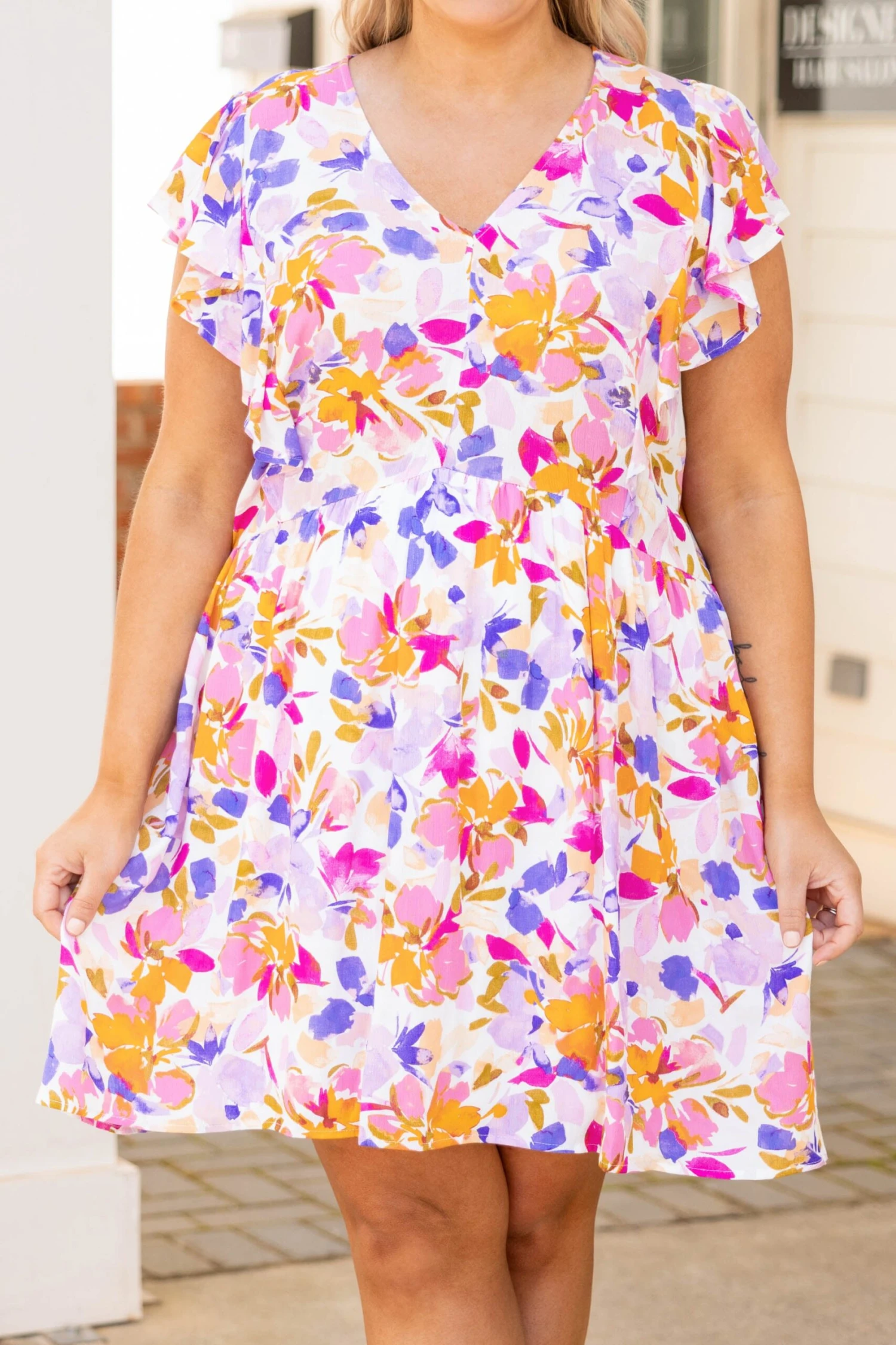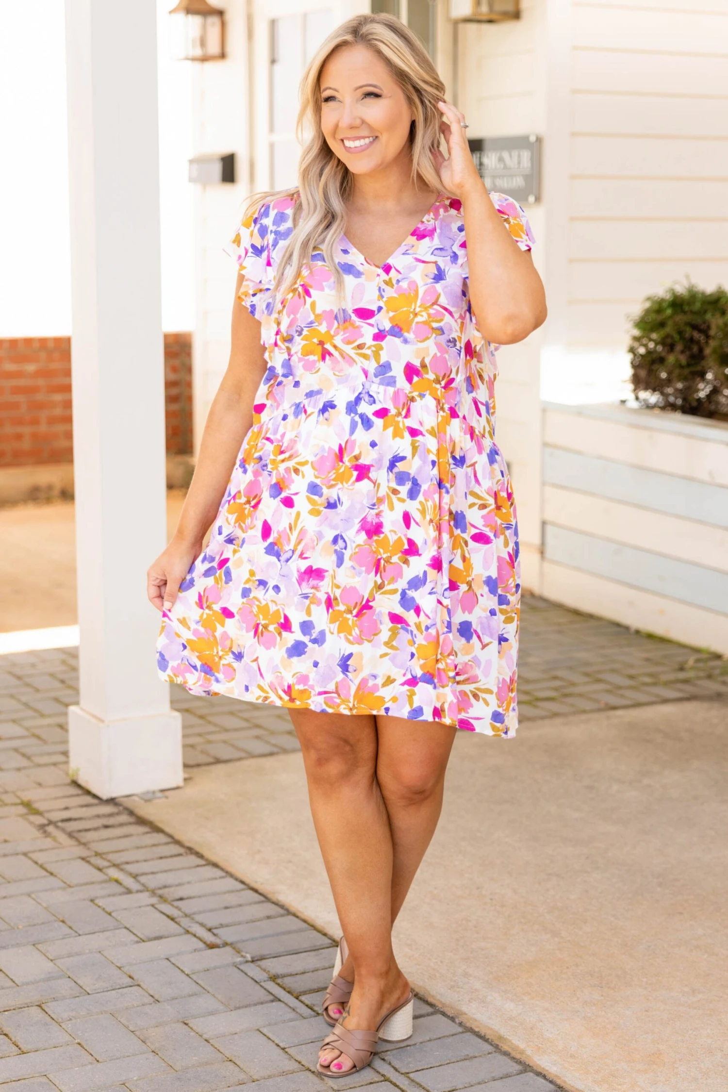 Enjoy the splash of life in this dress! This cutie has a fun floral design with stunning bright colors and a stylish babydoll design to flatter every body type! We love it styled with some heels and fun accessories for the perfect look!