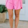 Get ready to sprint in style with these shorts in candy pink! These high waisted athletic shorts offer comfort and convenience with a zippered back pocket for your essentials! Don’t let your wardrobe be boring – add a pop of color and functionality with these shorts!