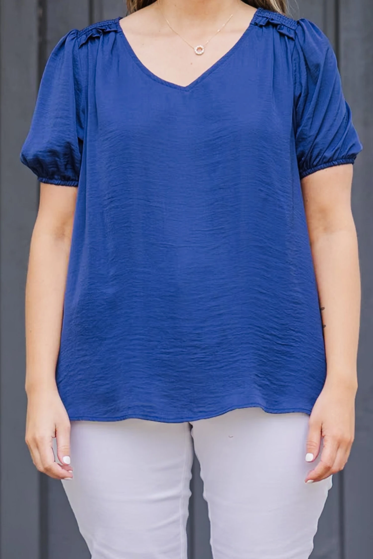 Embrace your independence in our Stand On Your Own Top, featuring playful bubble sleeves, a lovely navy color, and charming ruffle and smocked detailing! Stand tall and make a statement with this unique and versatile piece!