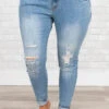 This is your moment to grab these gorgeous jeans! They have a medium wash that is a season favorite! They are stretchy, figure flattering, and great for all day wear! Style these jeans with a sassy shirt or a graphic tee for a classic chic look!