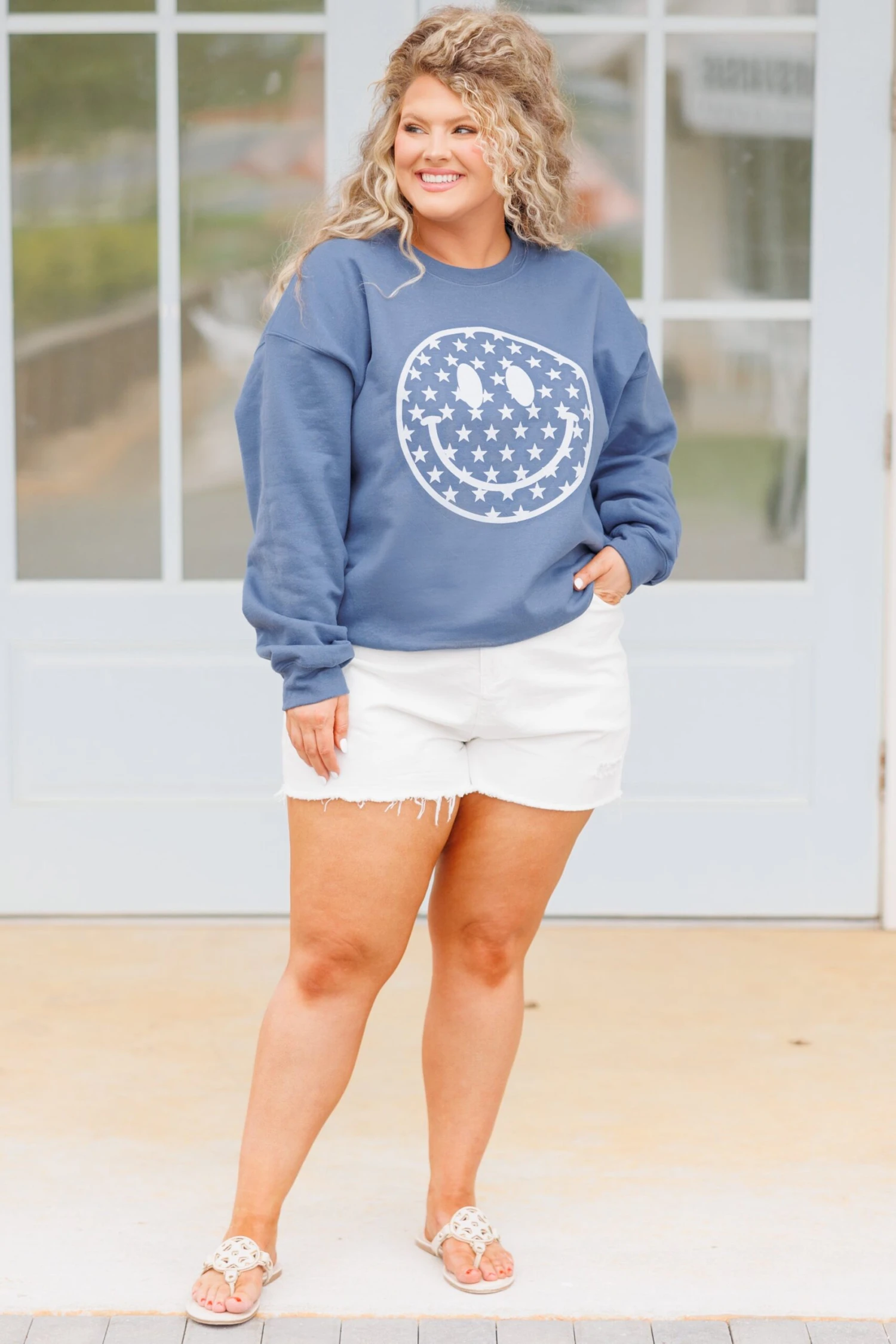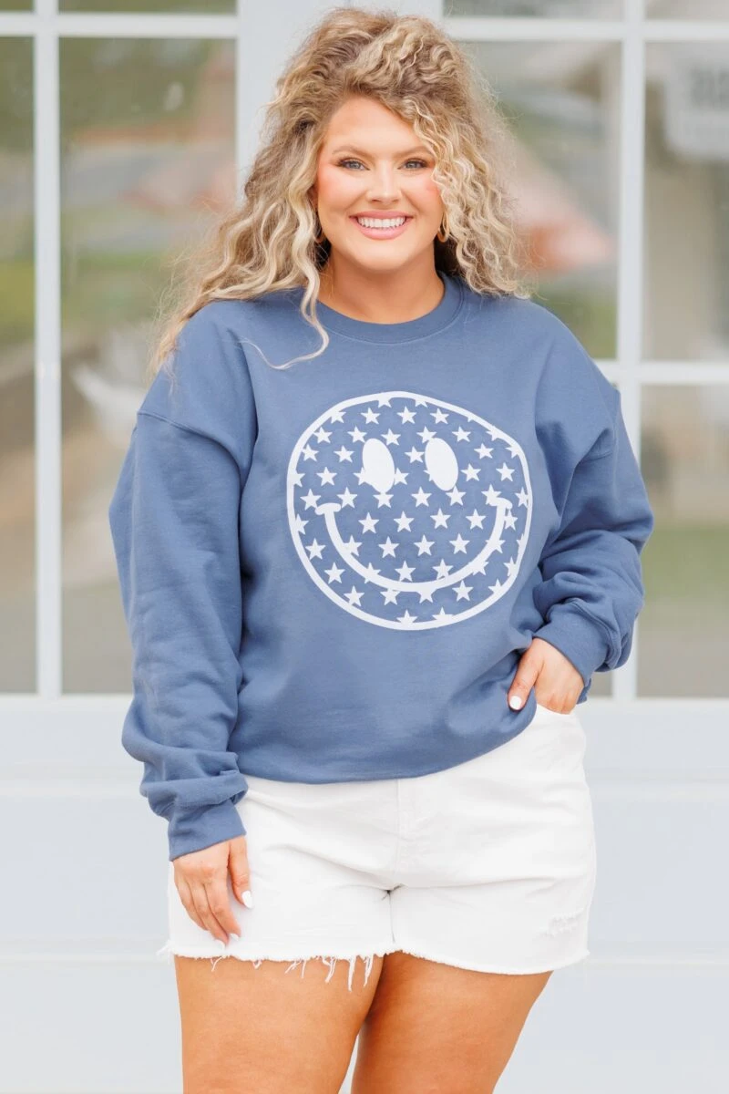 Stay comfortable and show off your sunny disposition with this sweatshirt! Featuring a sunny graphic and an indigo color, this sweatshirt is perfect for a casual day out! Crafted with soft, comfortable fabric and a loose fit, you’ll stay cozy wearing this stylish and fun top!