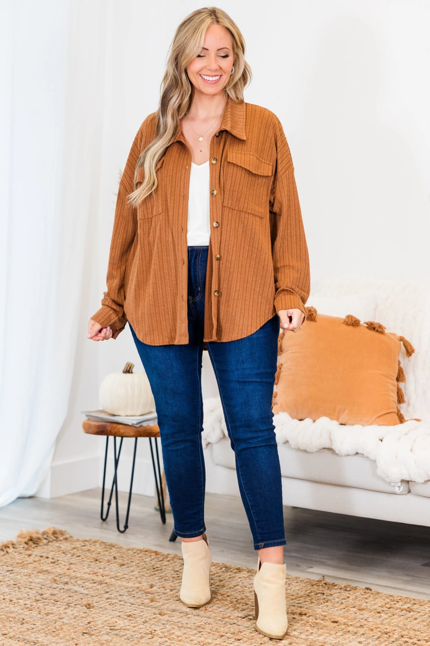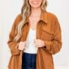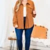 You’ll look like an angel in this gorgeous shacket! This top is a stylish and versatile piece that can be worn both as a shirt or a jacket! The brown color and textured material make it perfect for any occasion! Enjoy maximum comfort and style with this must-have shacket!