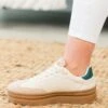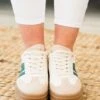 Step up your sneaker game with these sneakers!These beige platform sneakers feature a pop of color with green accents for a trendy and fun twist! The perfect addition to any outfit, these sneakers will have you walking on clouds and turning heads all day long!
