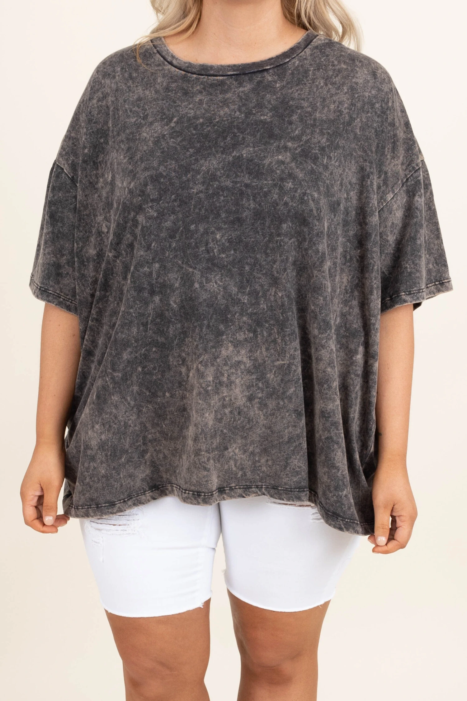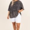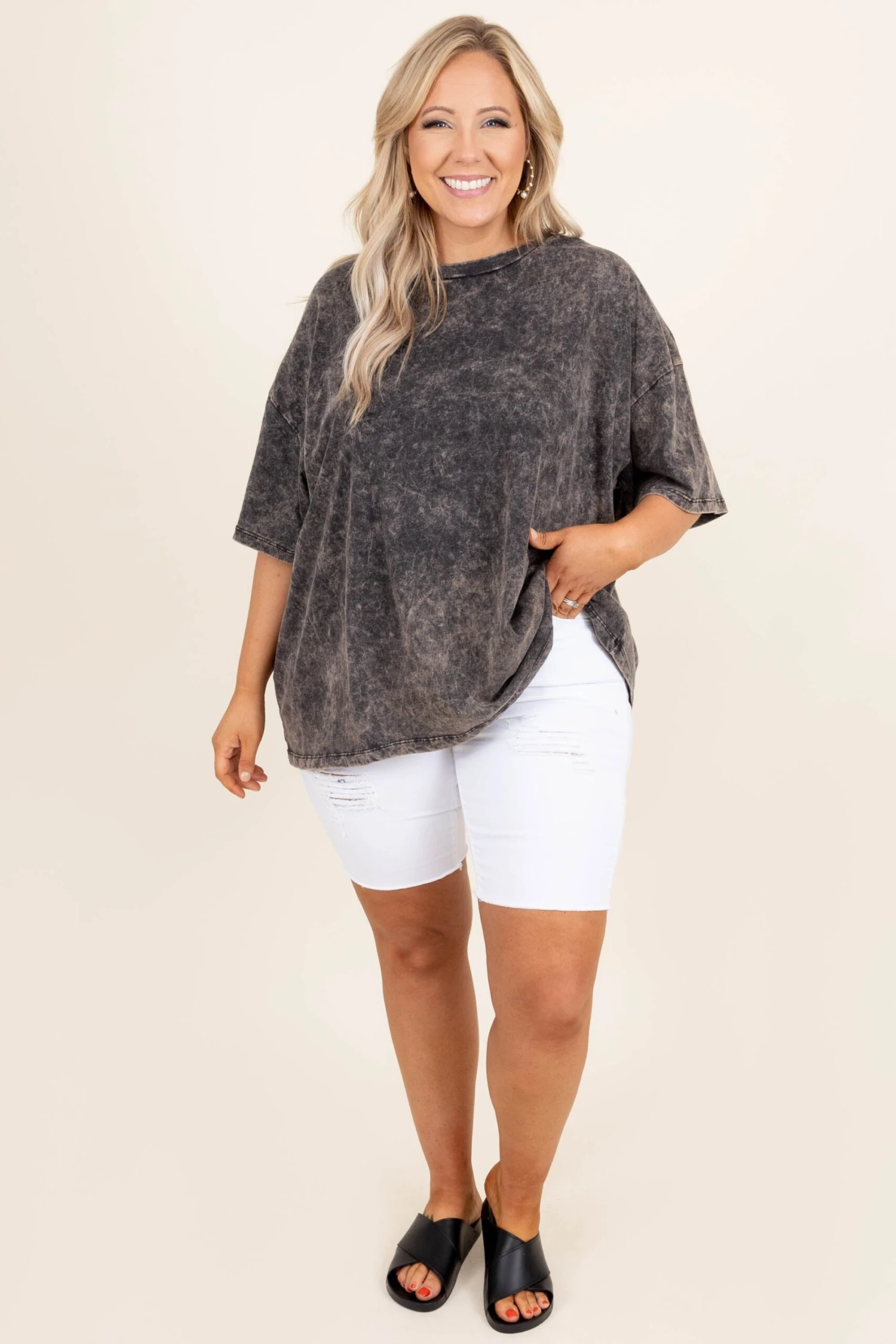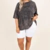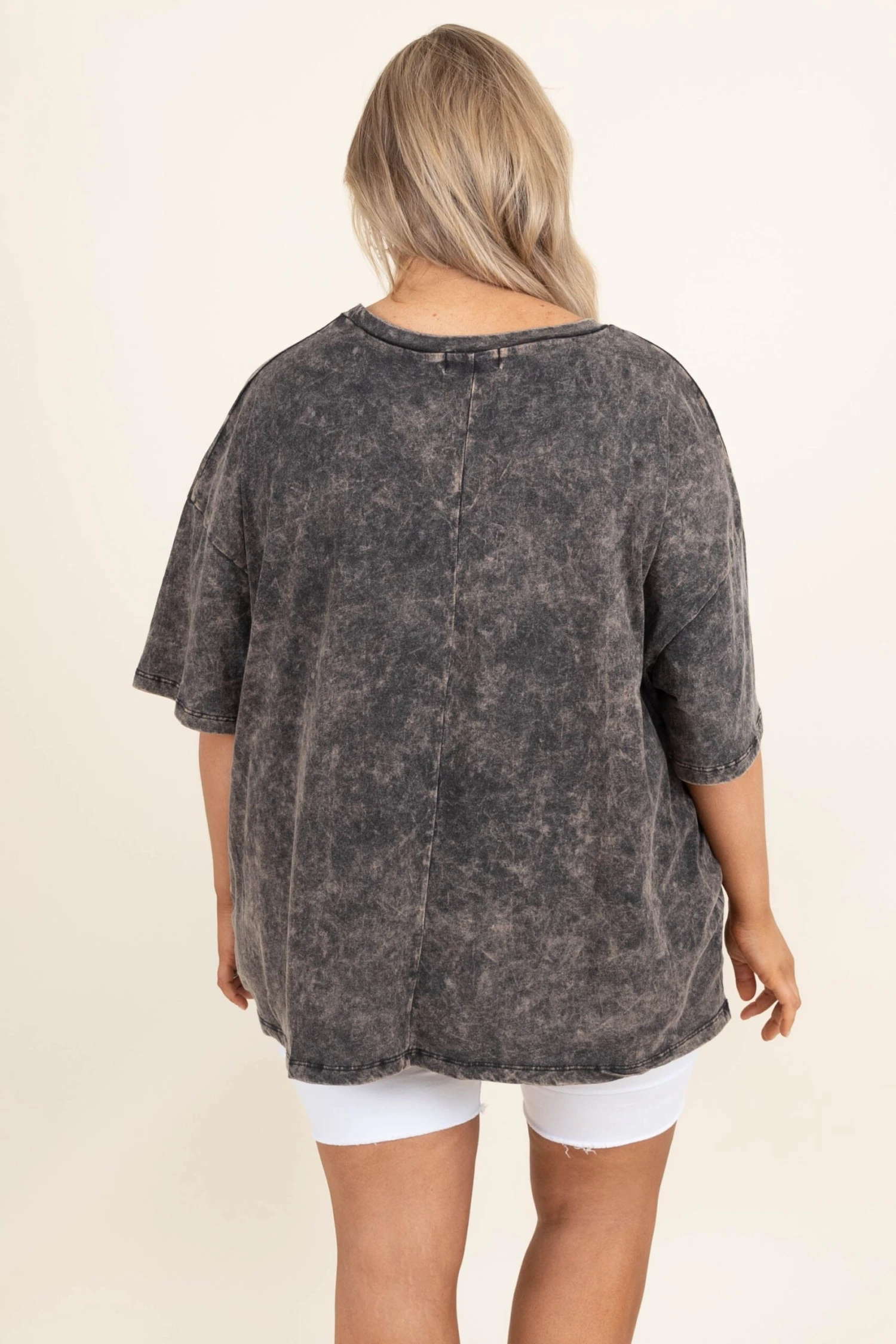 This is the perfect basic tee for all of your outfits! The mineral wash ash black color is so trendy and cute. Plus, it is neutral enough to match anything! The material is so soft and the oversized look looks good on everyone! Style it with white shorts or biker shorts for the perfect casual look!Â