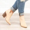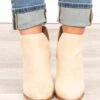 Stay on the right track with these lovely booties! They have a neutral toast color with a block heel and functional zipper that ensures the perfect fit! The sleek design and comfy fit are great for all day wear! Pair these booties with a flirty top and skinnies for a trendy chic look!