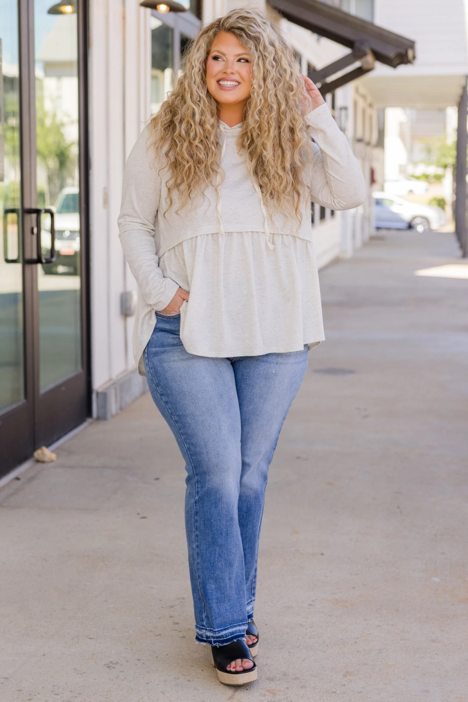 Stay cozy and chic with our Steadily Making Changes hoodie in oatmeal! Featuring a drawstring hoodie and a flattering babydoll fit, this versatile hoodie can be dressed up or down! Perfectly pairs with your favorite denim or leggings and fashion sneakers!