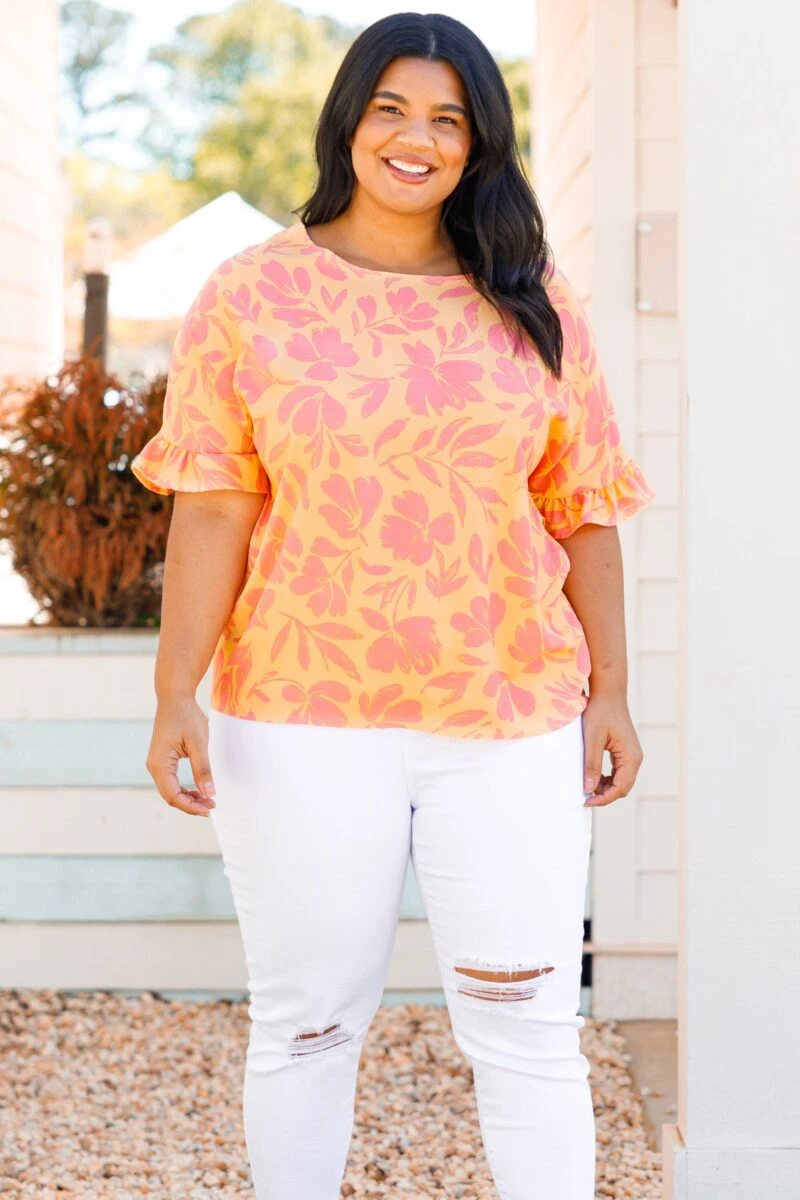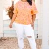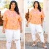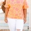 We are in LOVE with this beautiful top! It features an apricot color and flutter sleeves for a romantic and girly look! Its flattering fit is sure to look and feel good! Style this top with some cute accessories and skinnies for an effortlessly chic look!
