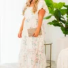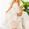 Say yes to brunch in this charming cream multi dress! With floral eyelet detail, bubble sleeves, and a maxi length, you’ll be twirling in style! The smocked back bodice and square neckline add a touch of sweetness!