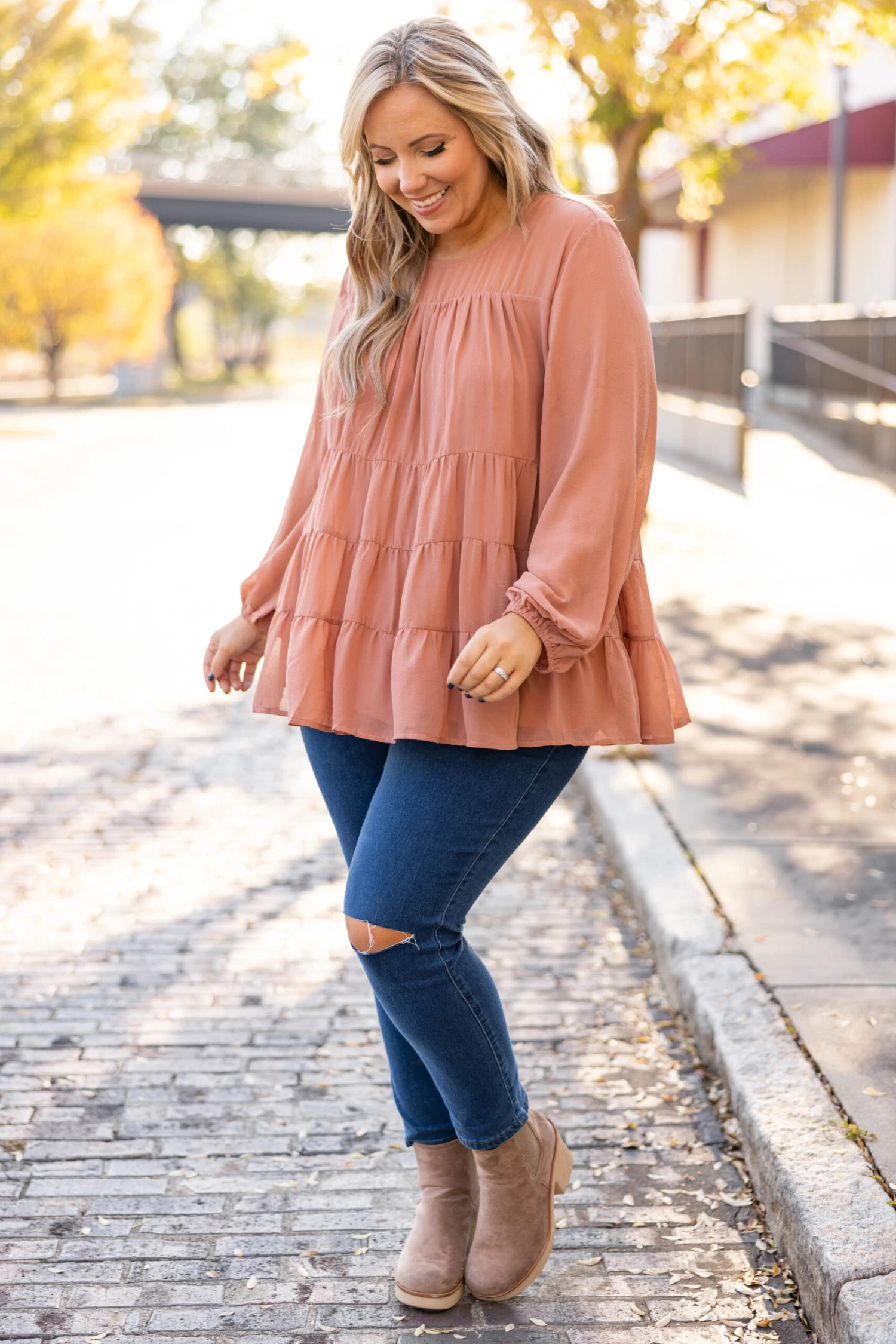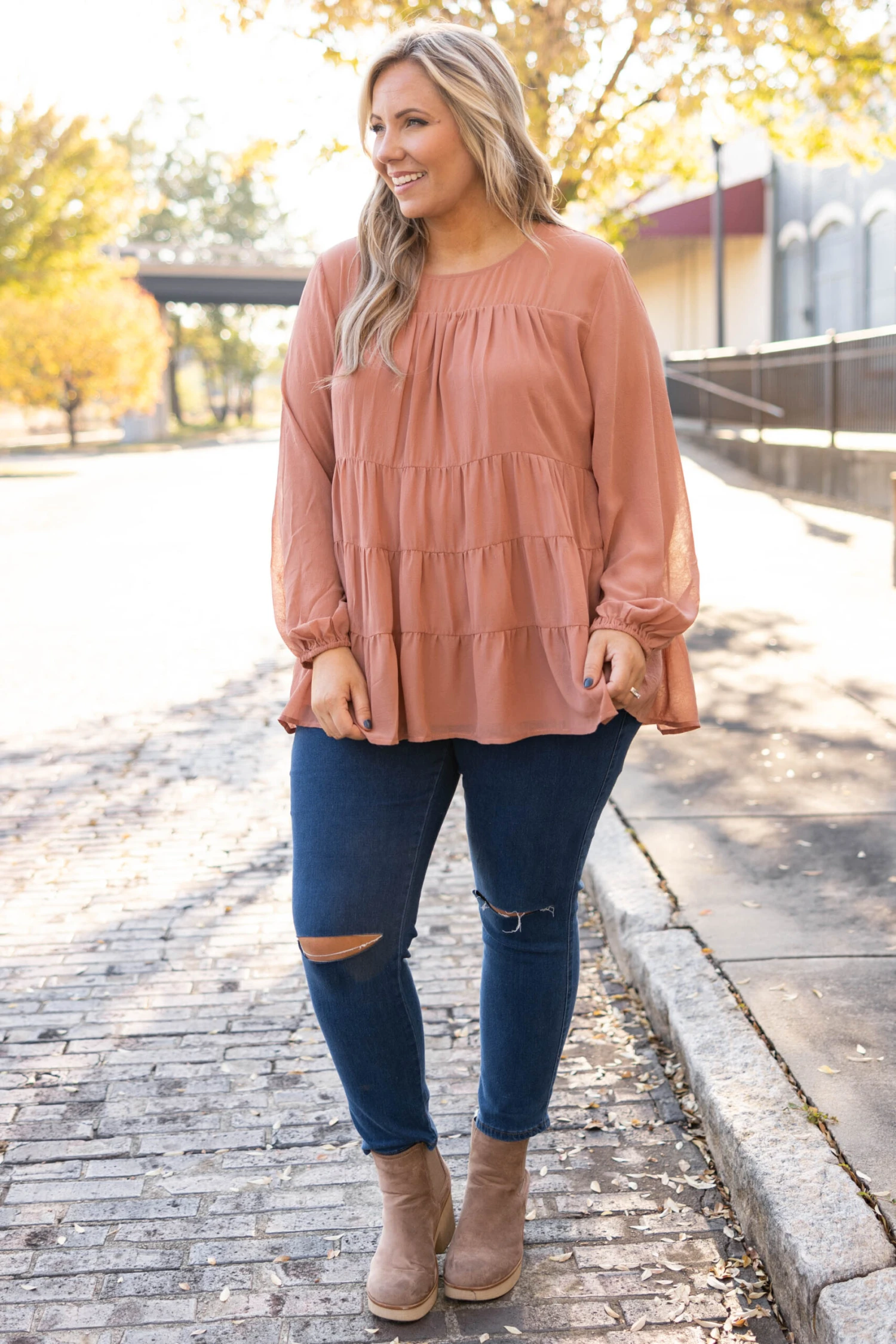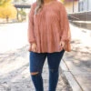 We love this top! It has a solid mauve color with a fun and flirty baby doll fit to flatter your figure! It’s comfortable for all-day wear, is easy to style with your favorite shoes and accessories, and is just what your wardrobe needs for the season! Pair this top with skinnies or leggings for an effortlessly chic look!
