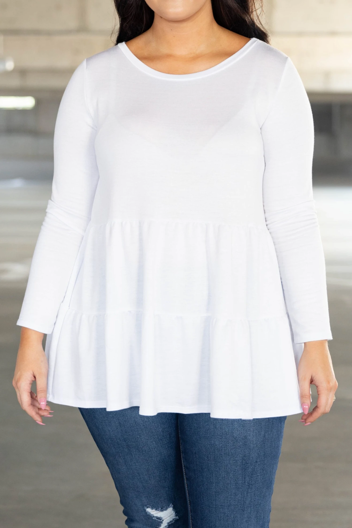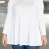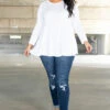 This top has been stealing our hearts! This top is perfect for afternoon tea, a day or night out, and every other event you may have on your agenda! Its solid white color can be paired with everything in your closet, and the fabric is so soft that you’ll WANT to wear it with everything! Toss it on with skinnies and heels for an easy everyday outfit or keep it casual with leggings and sneakers.Â
