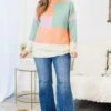Wrap yourself in style and comfort with this sweater! This multi-colored, colorblock mock neck sweater features a ribbed hemline, neck, and cuffs for a fashionable and cozy fit! Elevate your wardrobe with this must-have piece and make every moment count!