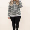 Camo is so on trend and we can’t get enough! This top has a classic camo print with neutral colors you can style for every occasion! It’s comfortable for all-day wear and features drawstrings for the ultimate design! Pair this top with your favorite skinnies and shoes and a casual, chic look!Â