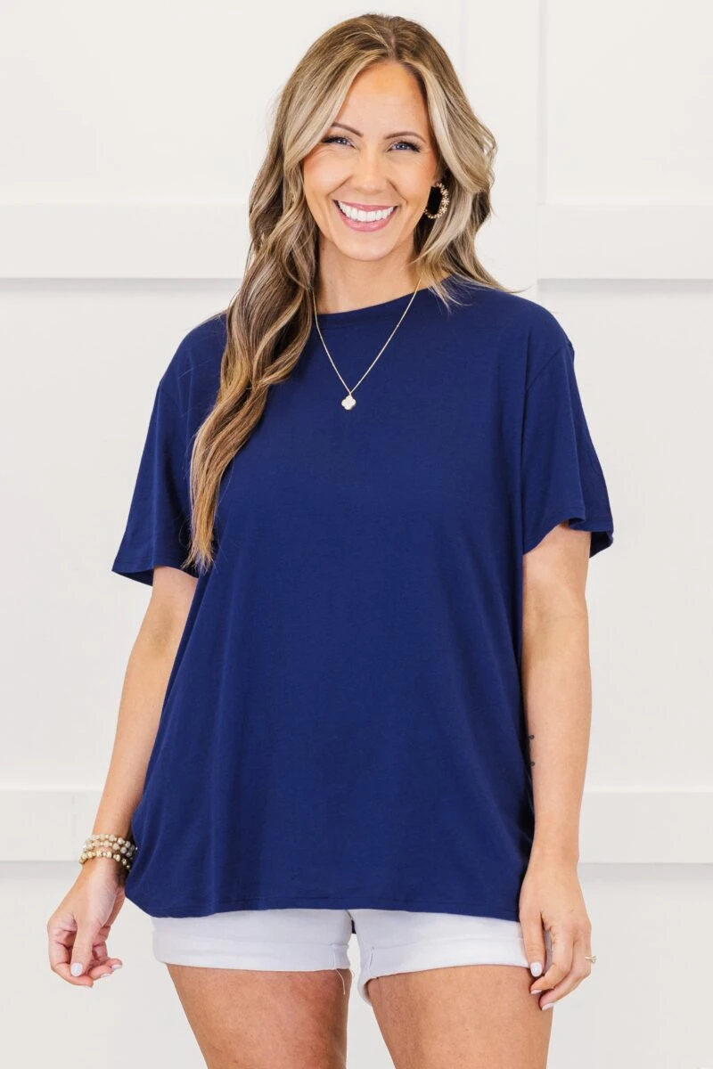 Add some luck to your wardrobe with this tee in a beautiful light navy! This staple piece features a classic crew neck design – perfect for any casual outfit!