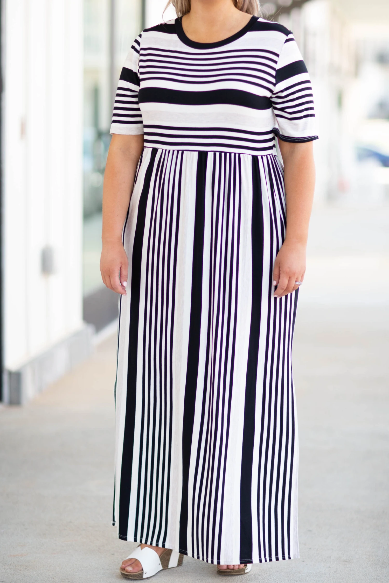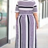 These stripes are right on cue!! This sleek maxi is our new favorite!! It has a soft, stretchy fabric and a super flattering fit. The best part is you can wear it casual during the week or dress it up for a weekend occasion! Just add chic earrings and wedges to complete the look!