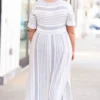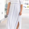 These stripes are right on cue!! This sleek maxi is our new favorite!! It has soft, stretchy fabric and a super flattering fit. The best part is you can wear it casually during the week or dress it up for a weekend occasion! Just add chic earrings and wedges to complete the look!